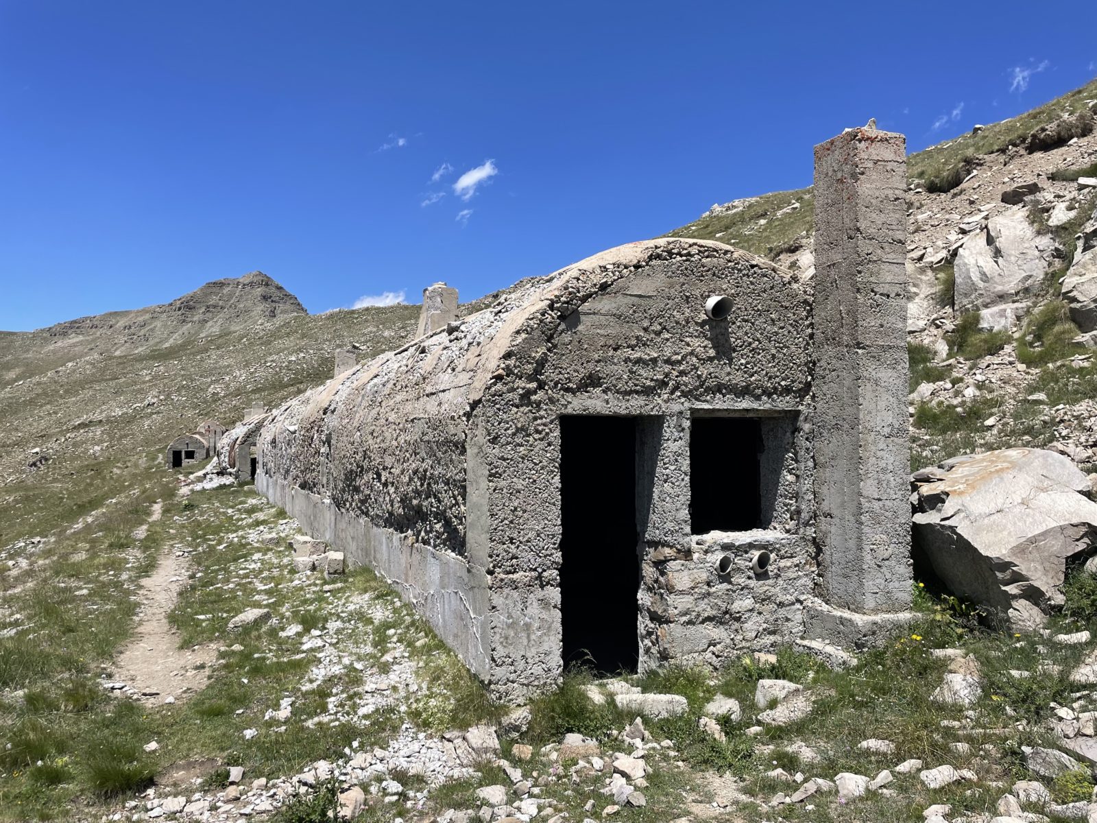 V sedle jsem těsně před 14. hodinou. Jdu prozkoumat ruiny stavení, co jsem viděl z dálky. Asi to musely být nějaké bunkry pro vojáky.