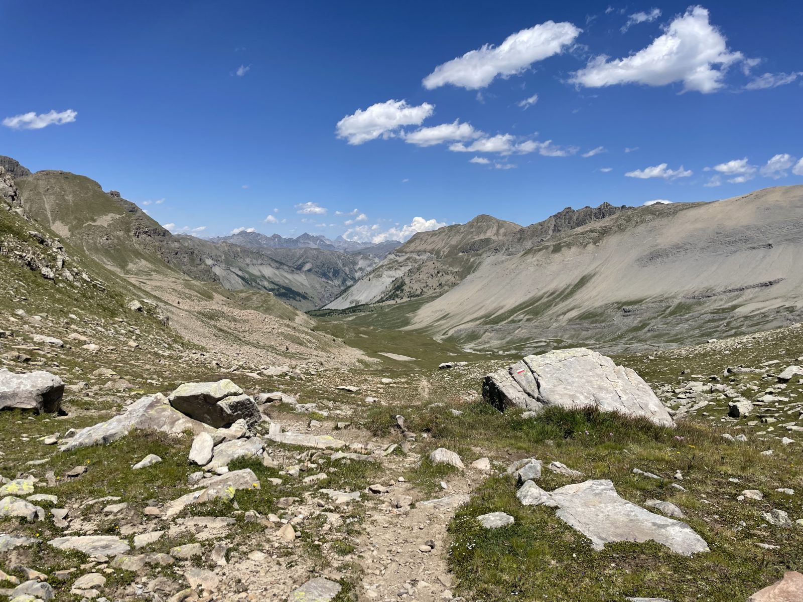 Pokračuju doprava dál na stejné straně pod hřebenem. Je to takový travers. V 9:04 jsem v dalším sedle – Pas du Lausson (2602 m).