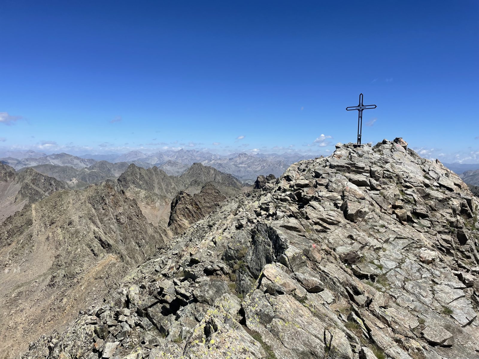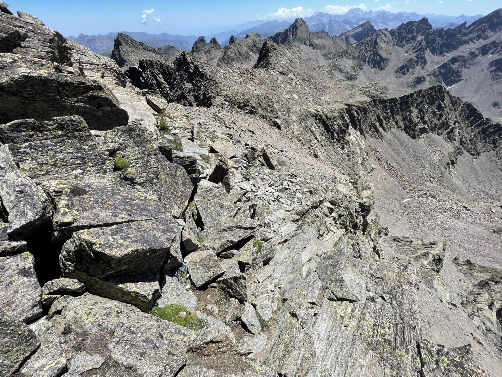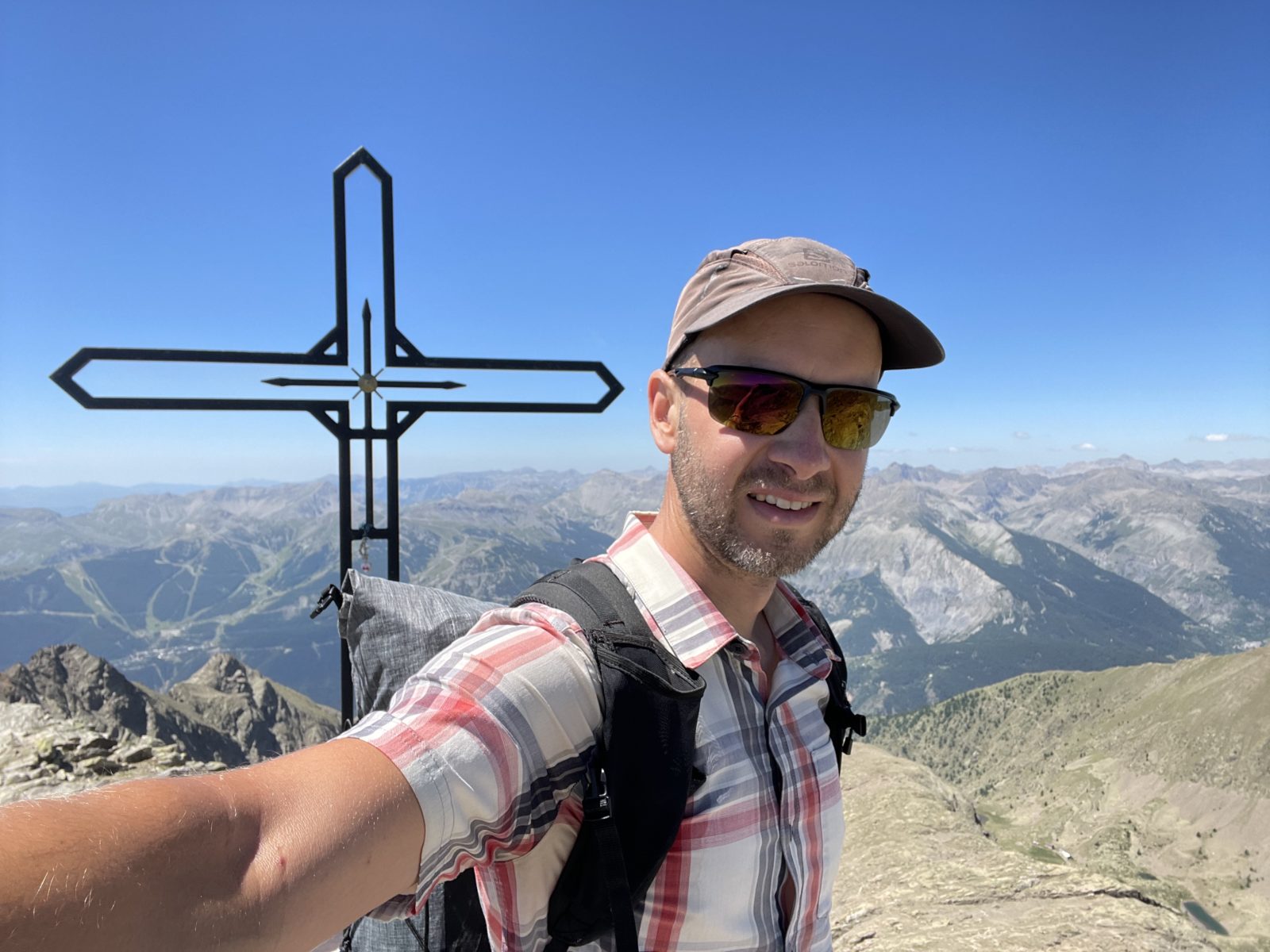 Ve 12:11 jsem na vrcholu – Mont Ténibre (3031 m). Hurá! Výhledy jsou tu bomba. A je krásně a vůbec nefouká. Dávám pauzu a kochám se.