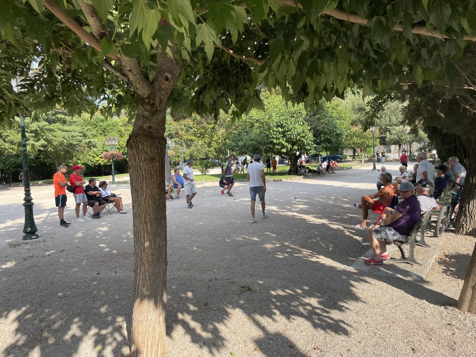 Pauza trvala víc než hodinu. Asi v 18:15 vyrážím. Po cestě ještě kupuju zmrzku. Pak míjím park, kde všichni hrajou pentangue. V 18:33 míjím na silnici ceduli označující konec obce Sospel. O pár minut později odbočuju ze silnice a pokračuju po kamenité cestě. O kus dál odbočuji i z ní na cestičku. Jde se mi celkem dobře, delší pauza dost pomohla. Ale teda pořád je dost horko a potím se hodně.
