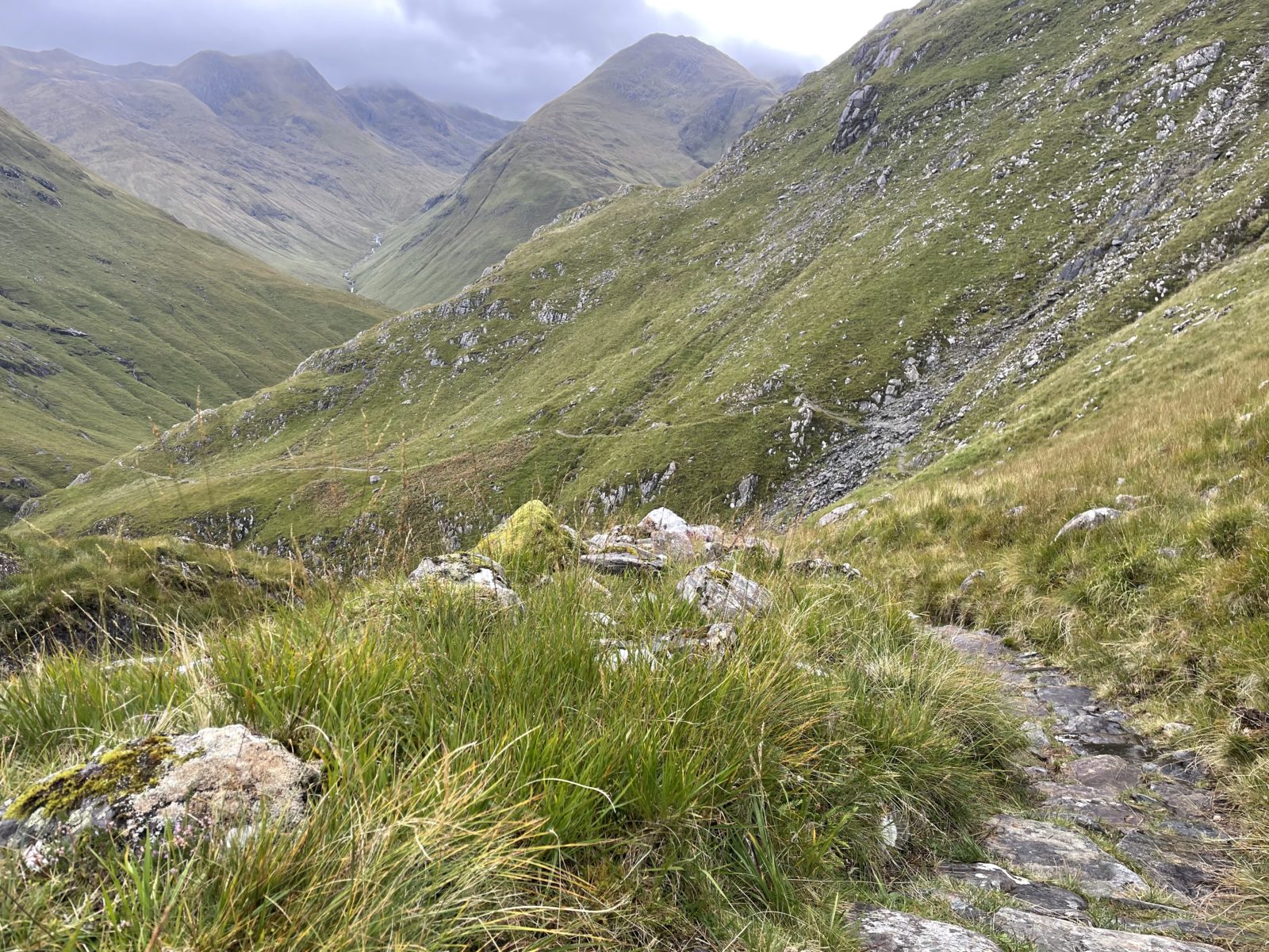 Jak už to bývá, vylezu do sedla a pak zase klesám do údolí. Tentokrát je to Glen Affric, celkem známé údolí, kterým vede Affric Trail.