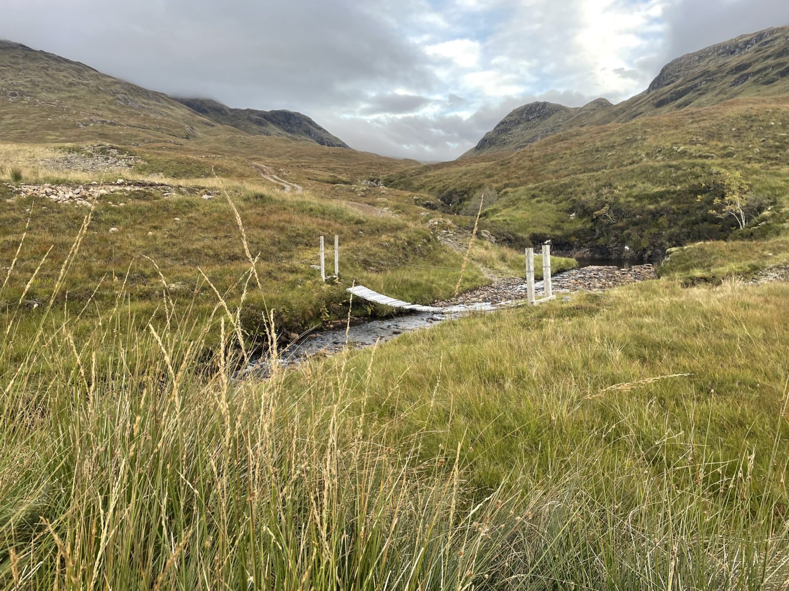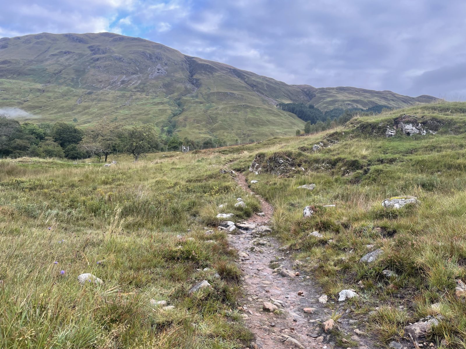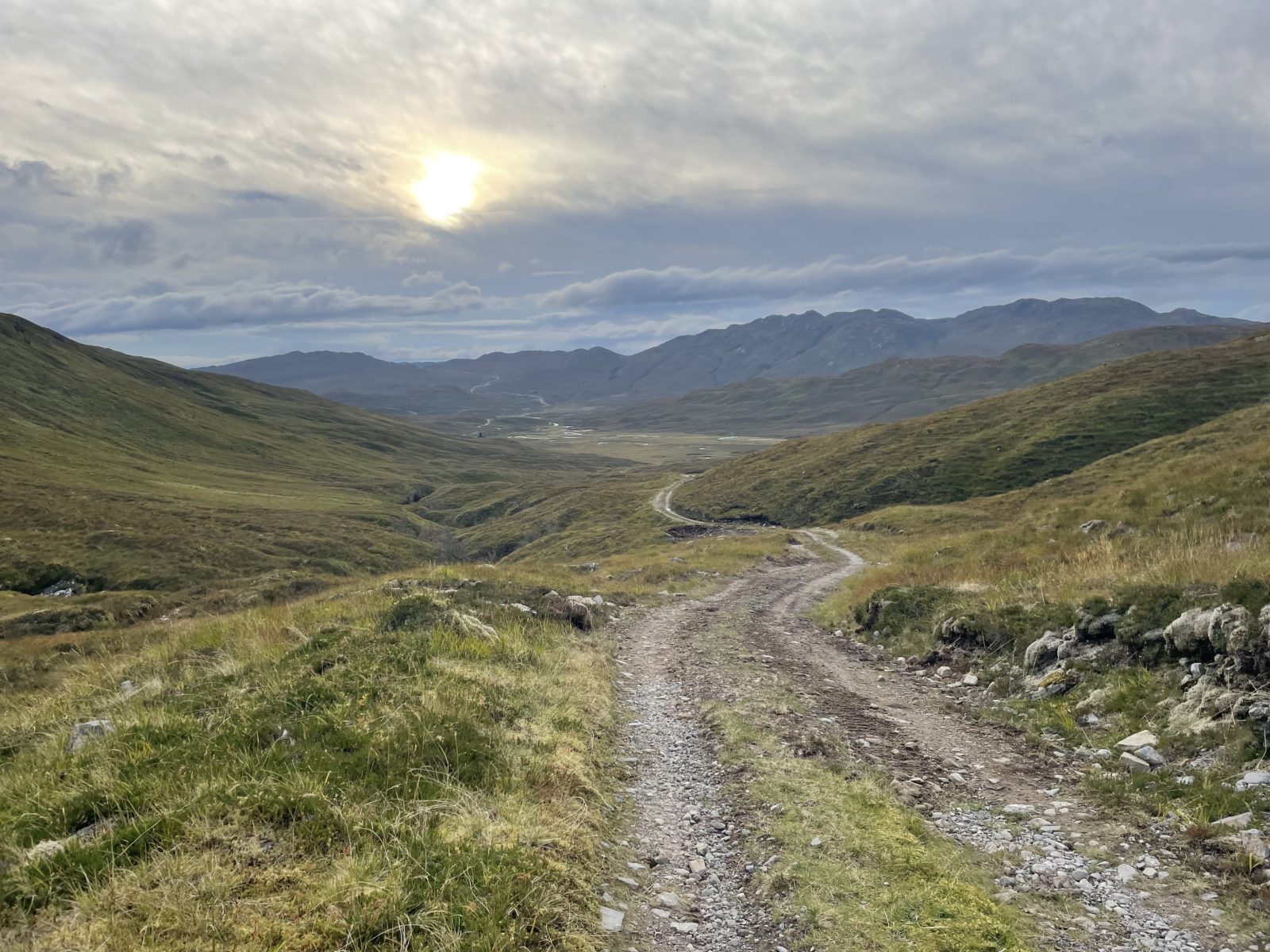 Naštěstí když dojdu na nejvyšší místo zhruba v půlce, tak dál už pokračuje cesta, která je čím dál lepší. No a pak se dostanu na stěrkovou cestu a mám vyhráno. Teď je to tak 6 km až dolů do dalšího údolí, kde je bothy. Už se mi moc nechce, ale to už dojdu.