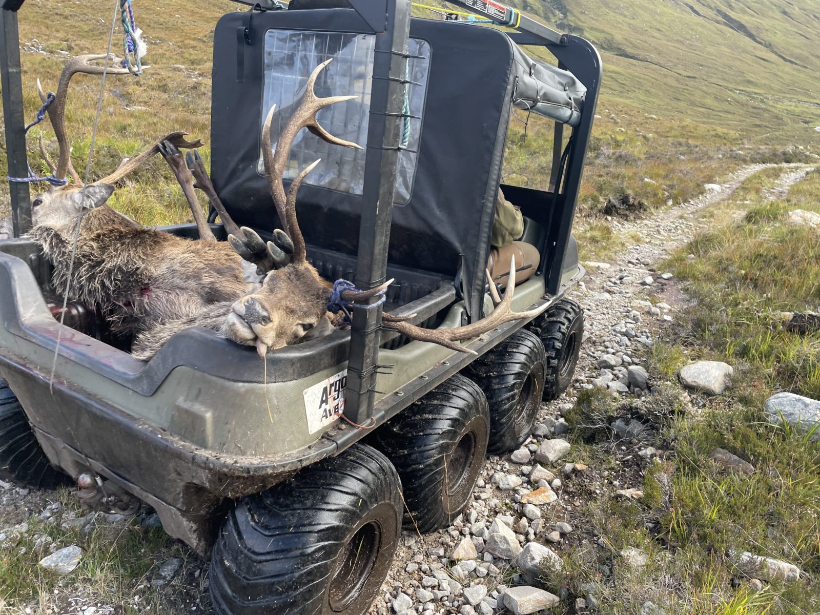 Začínám stoupat do dalšího sedla. Pořád po celkem slušné cestě. Kousek pod vrcholem potkám lovce na osmikolce, jak si veze kořist. Je to smutný pohled.