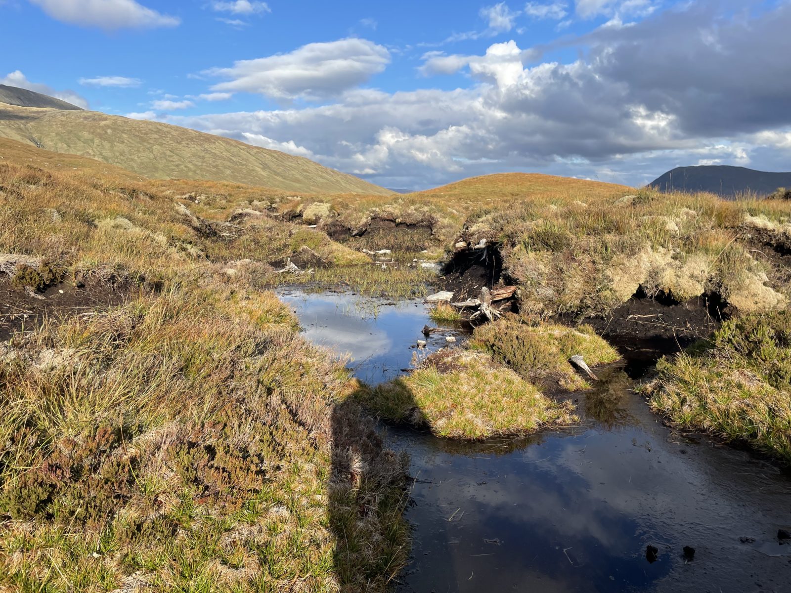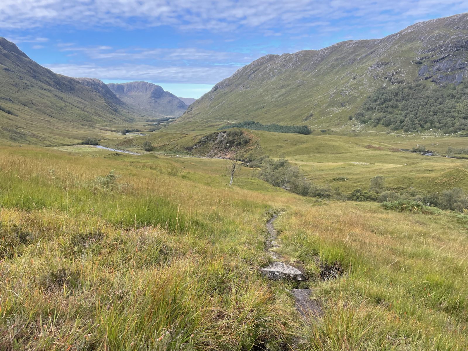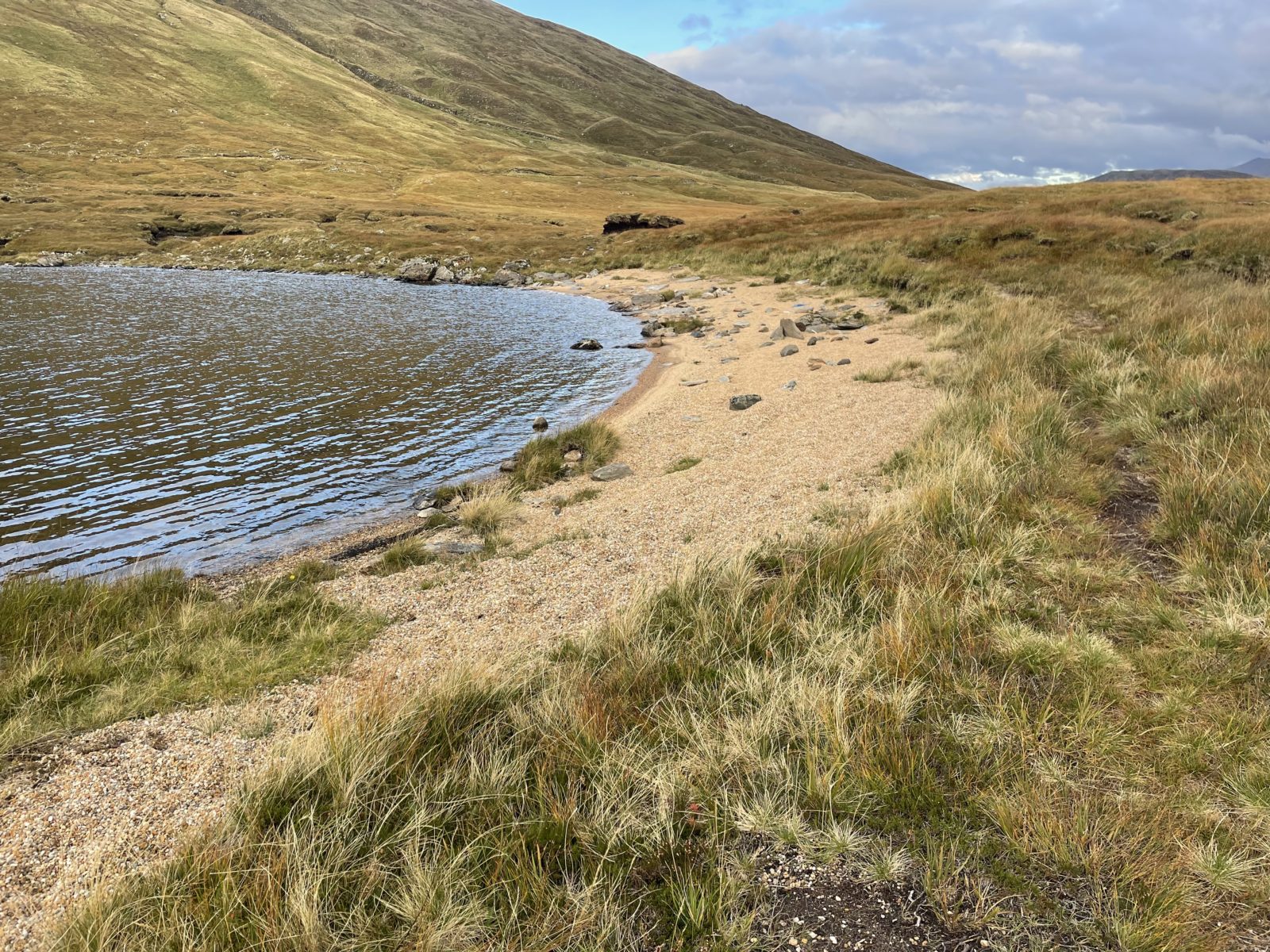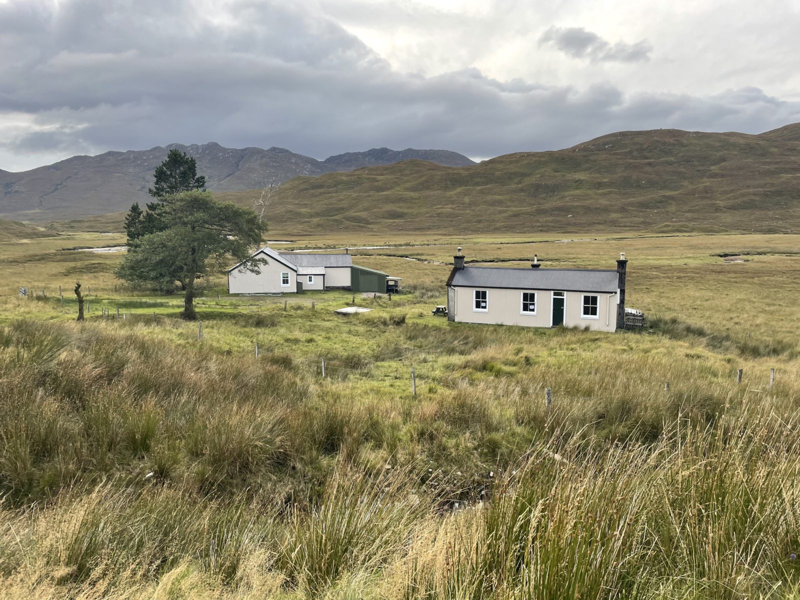 V 15:35 jsem dole. Přejdu potok a jsem u Maol Bhuide Bothy. Chata je hezká a venku je krásně. Dávám pauzu a suším stan.