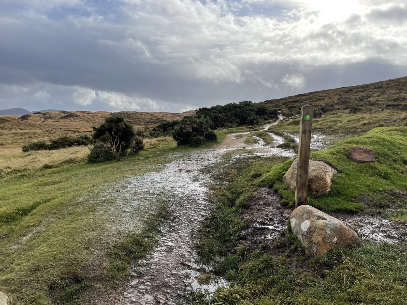 Dnes akorát dojdu do Sandwood Bay a zpět. Tím můj výlet skončí. Oficiální konec stezky je Cape Wrath, což je dalších 10 km na sever v náročném terénu (není tu žádná cesta). Jenže tam já nemůžu, protože tu zrovna probíhá vojenské cvičení. A i kdybych se tam dostat mohl, tak je problém taky v tom, že trajekt do Durness jezdí jen do konce září. Takže bych musel jít stejnou cestou zpět. Což by asi nebyla moc zábava. Takže možná je to takto lepší.