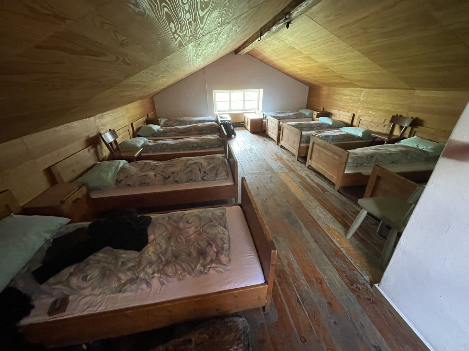Ubytuju se, dám sprchu, přeperu oblečení. A pak si jdu sednout ven a studuju mapu, vybírám fotky na Stravu a píšu blog.