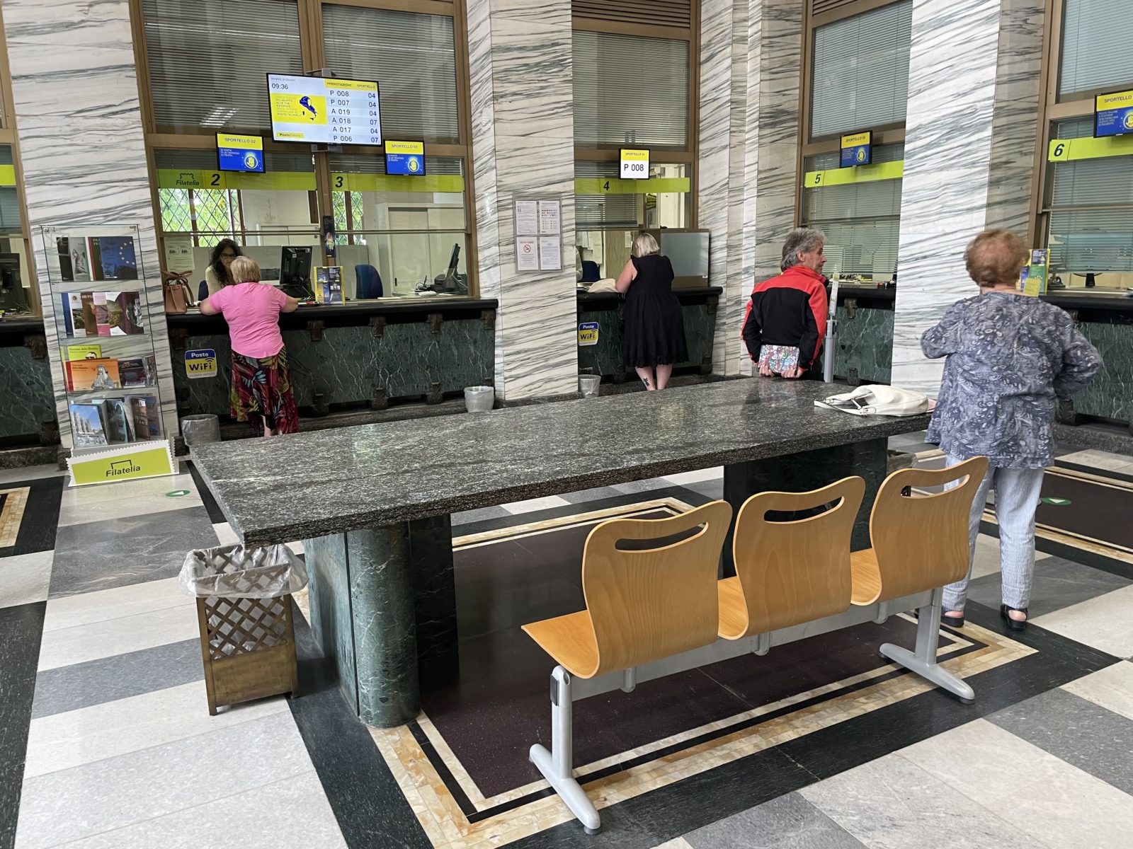 Pak jdu na poštu odeslat balík s botama na reklamaci. Tady to trvá trochu dýl, přestože tu není moc lidí. Stojí to 24 eur, drahota!