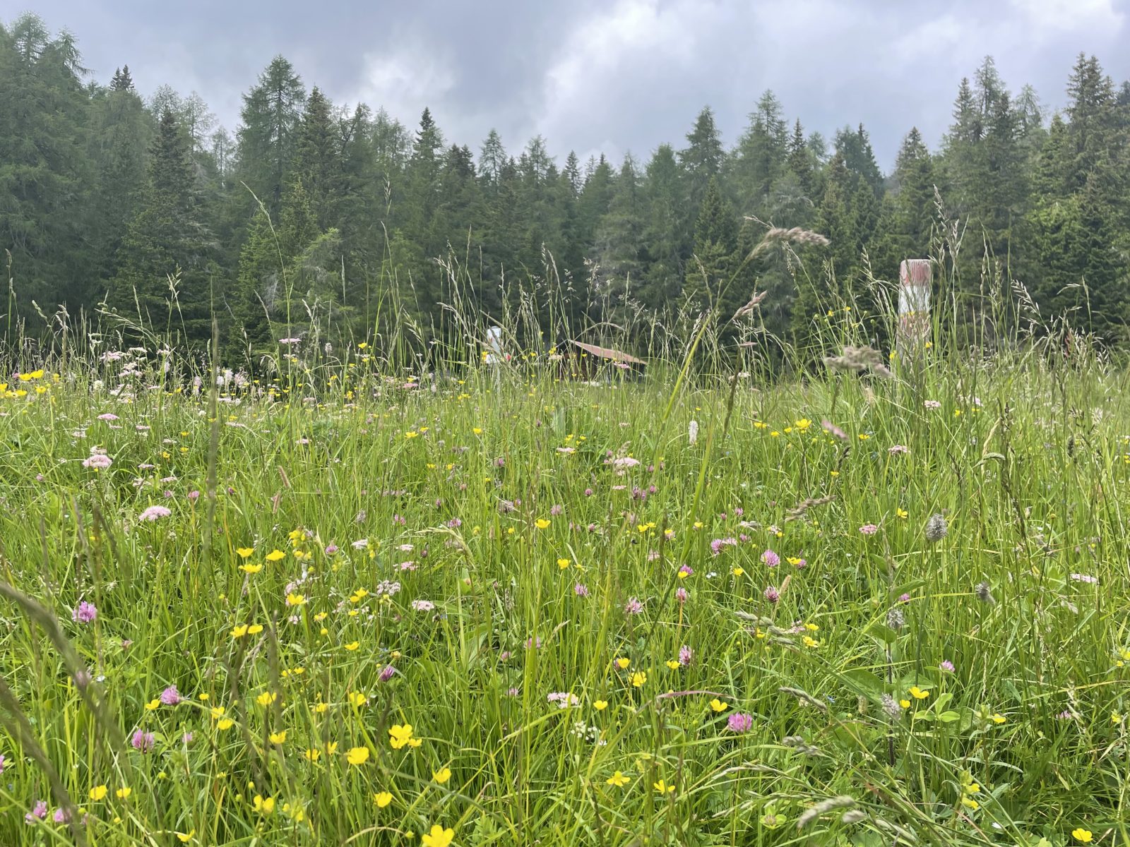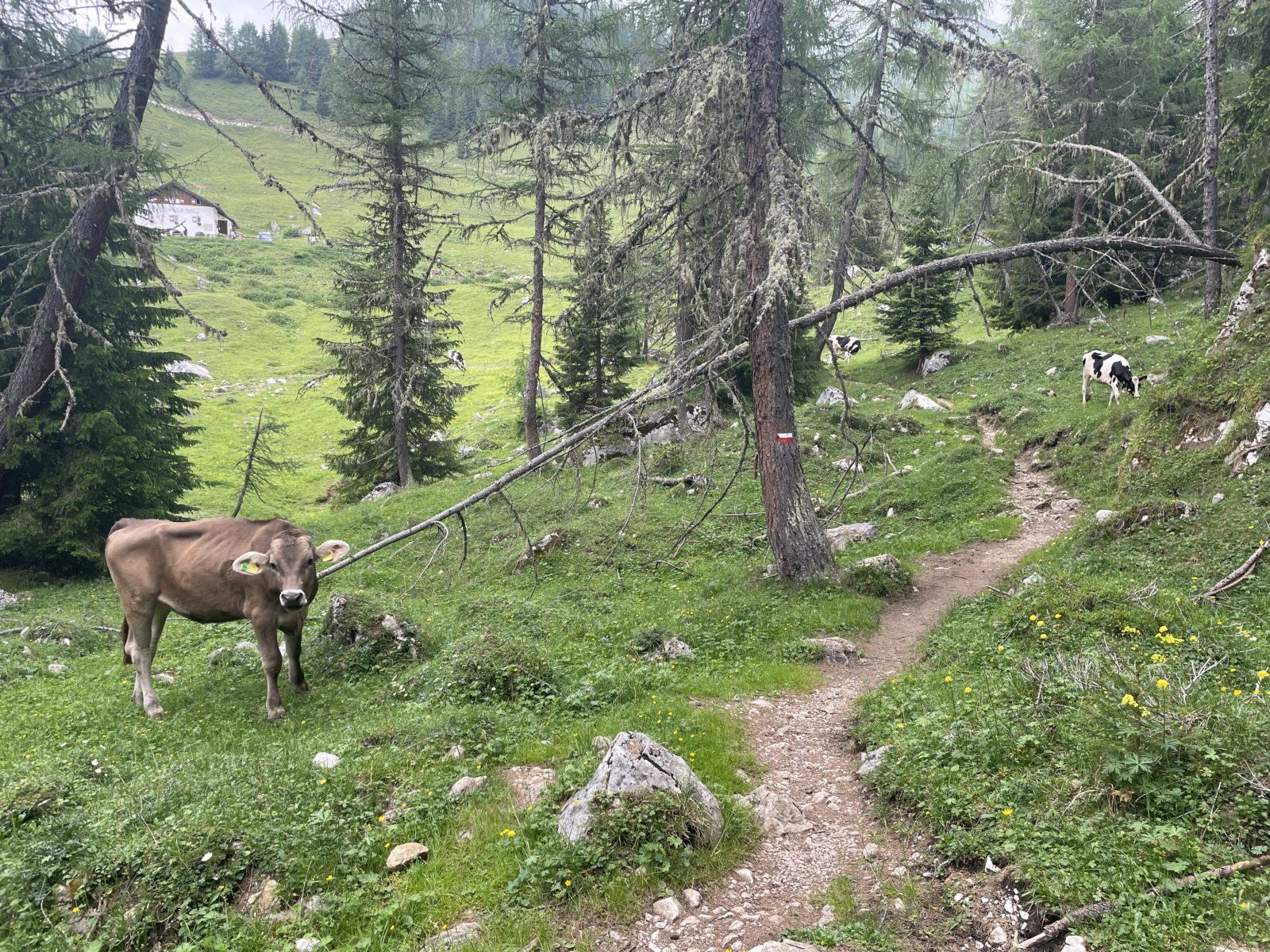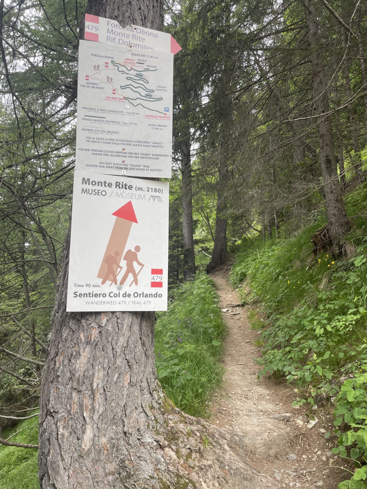 Teď už je to víceméně z kopce až k silničnímu sedlu Cibiana (1530 m). Tady si v chatě dám zmrzku a doplním vodu.