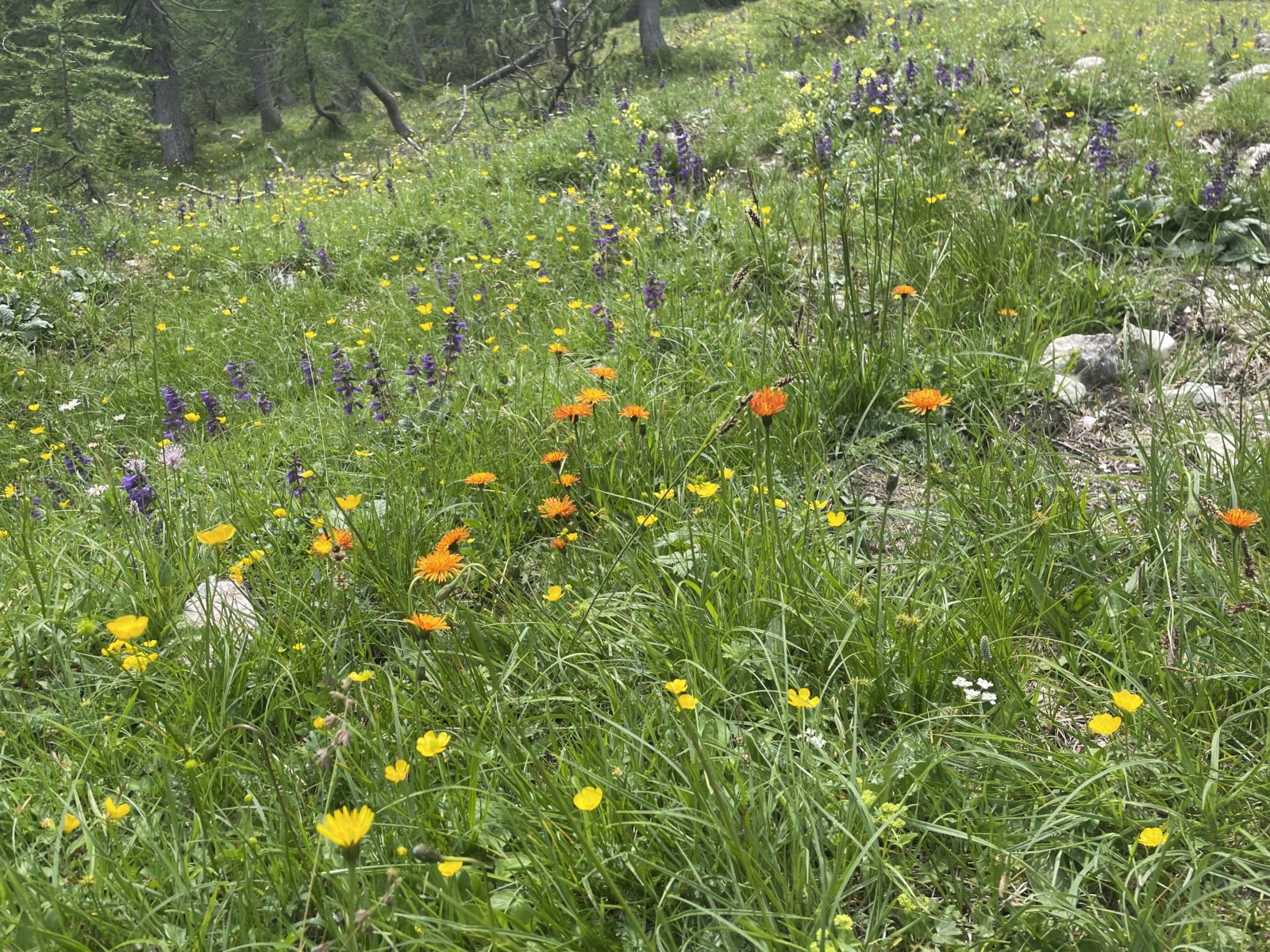 V 8:47 se dostanu do výšky 1858 m a napojím se na normálnější stezku. Je to taková hezká procházka lesem. V 9 na dalším rozcestí potkám 2 turisty.