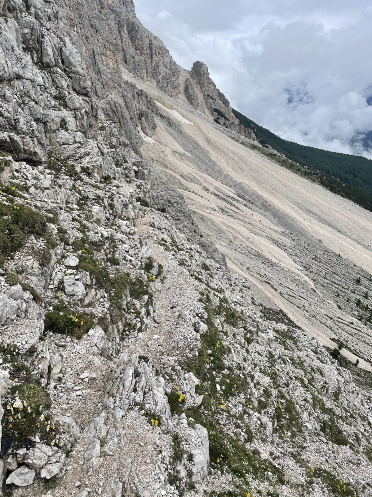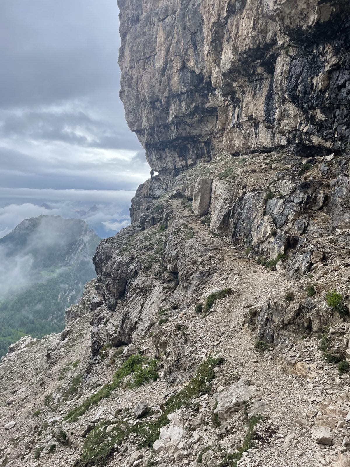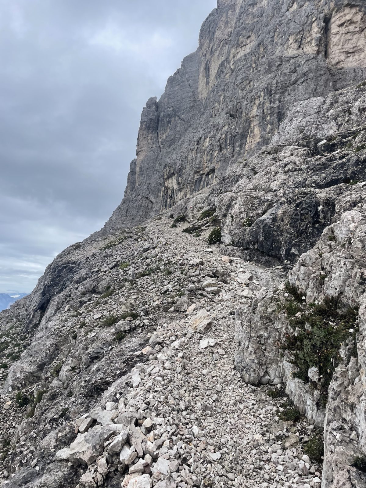Chvilku pokračuje celkem normalní cestička, ale pak to přijde – traverz ve skalní stěně na úzké římse. Je to fakt něco. A až na pár výjimek to není nijak zajištěné. Některá místa jsou trochu adrenalin.