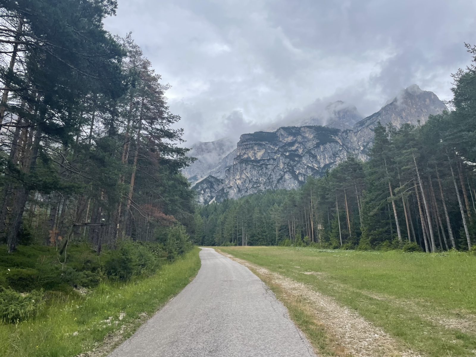 Na chatě jsem nechal hodně věcí, takže všechno přebaluju a o pár minut později vyrážím směrem do údolí do vesnice San Vito di Cadore. Cesta je z většiny po štěrkové cestě a celkem je to 1000 výškových metrů.