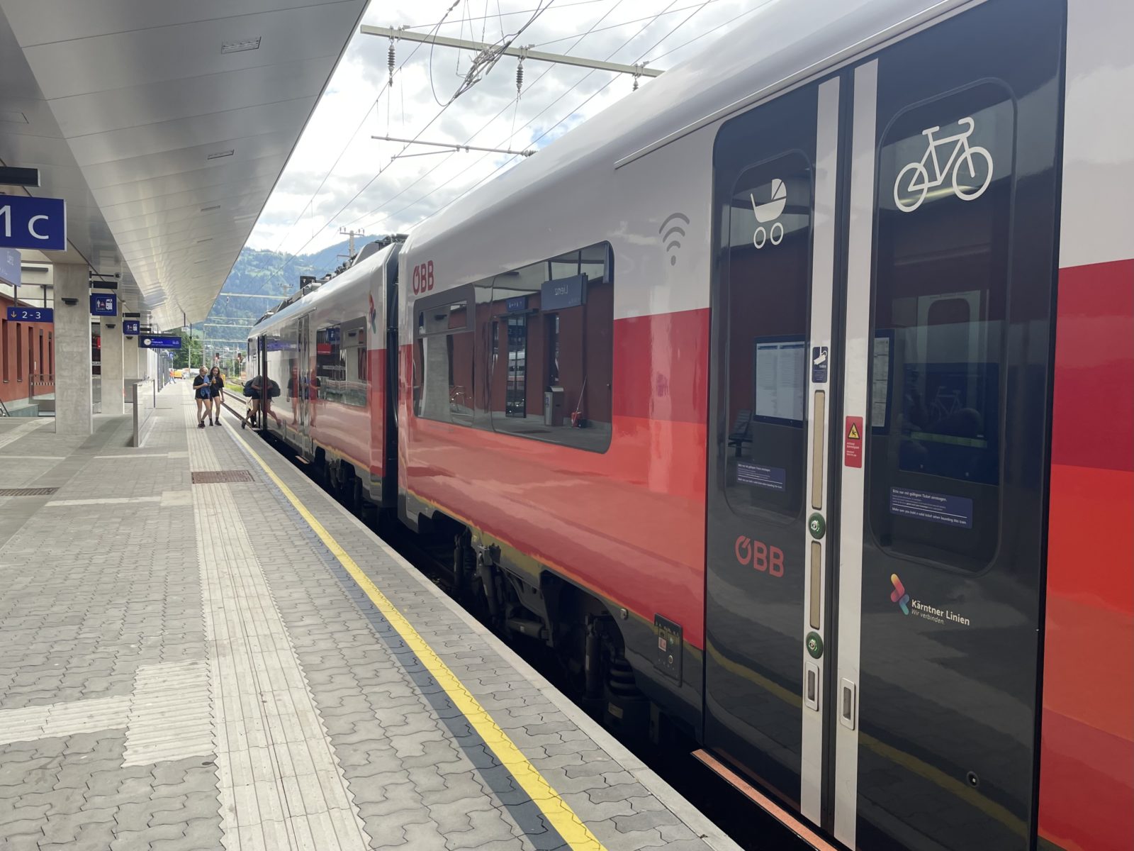 Nakupuju v sámošce nějaké jídlo pro sebe a jako dárek pro naše. Pak směřuju zpět na nádraží a někdy o čtvrt na 3 pokračuju dál do Villachu. Opět je to taková lokálka, která zastavuje v každé díře.