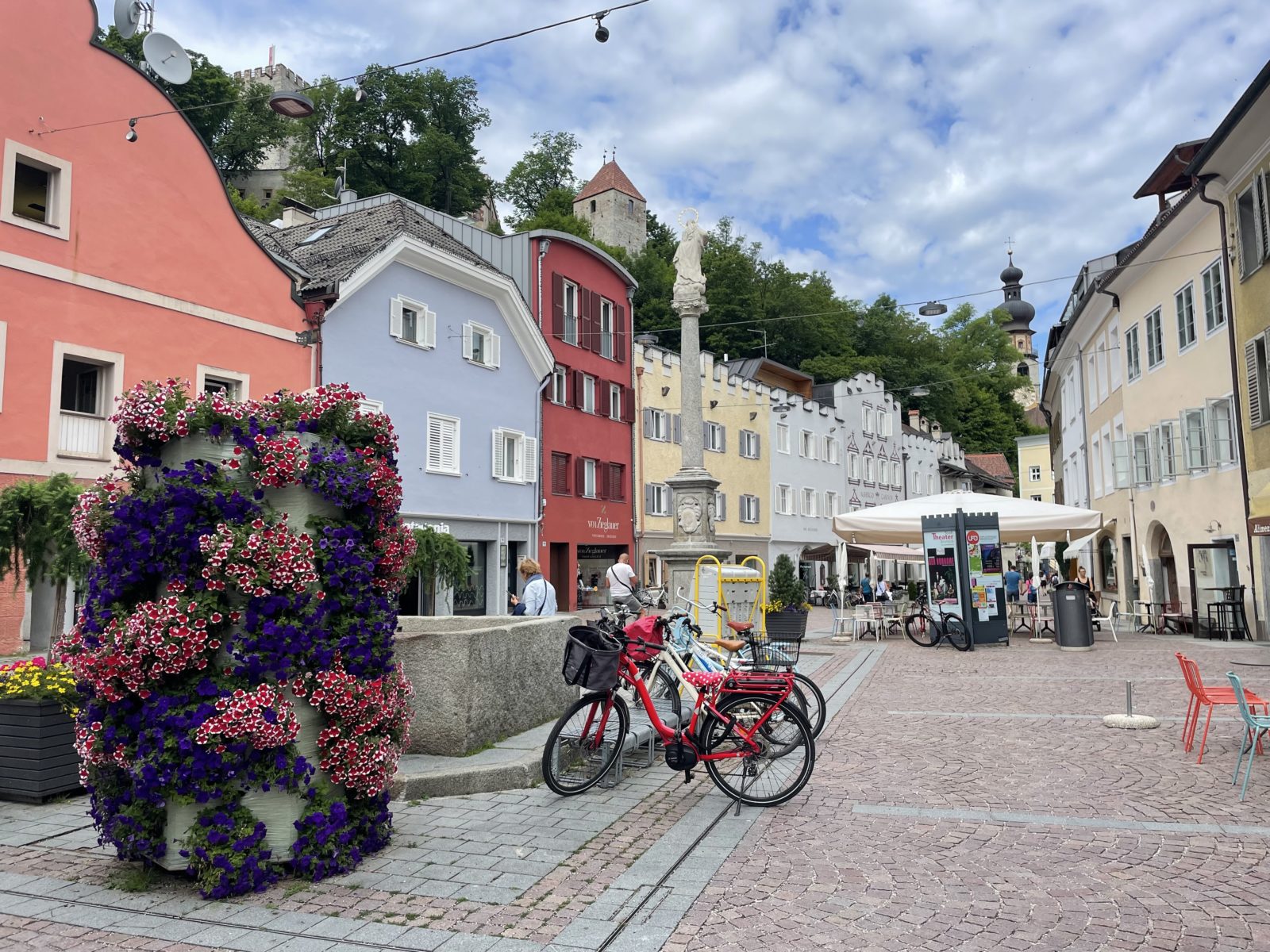 Dám se do řeči s paní, co tu obsluhuje. Je to Slovenka. Říkám jí, že to tady musí být náročné na jazyky, protože člověk musí umět italsky, německy a nejspíš i anglicky. Paní na to říká, že italsky bohužel moc neumí, ačkoli tu žije dlouho, a že byly vždy dvě – jedna komunikovala s italsky mluvícími hosty a ona s těmi, co mluví německy. Jenže teď je na to sama, tak neví, jak to zvládne. Jako všude jinde i zde bojují s nedostatkem personálu. Prý kvůli tomu dokonce zrušili večerní provoz restaurace.