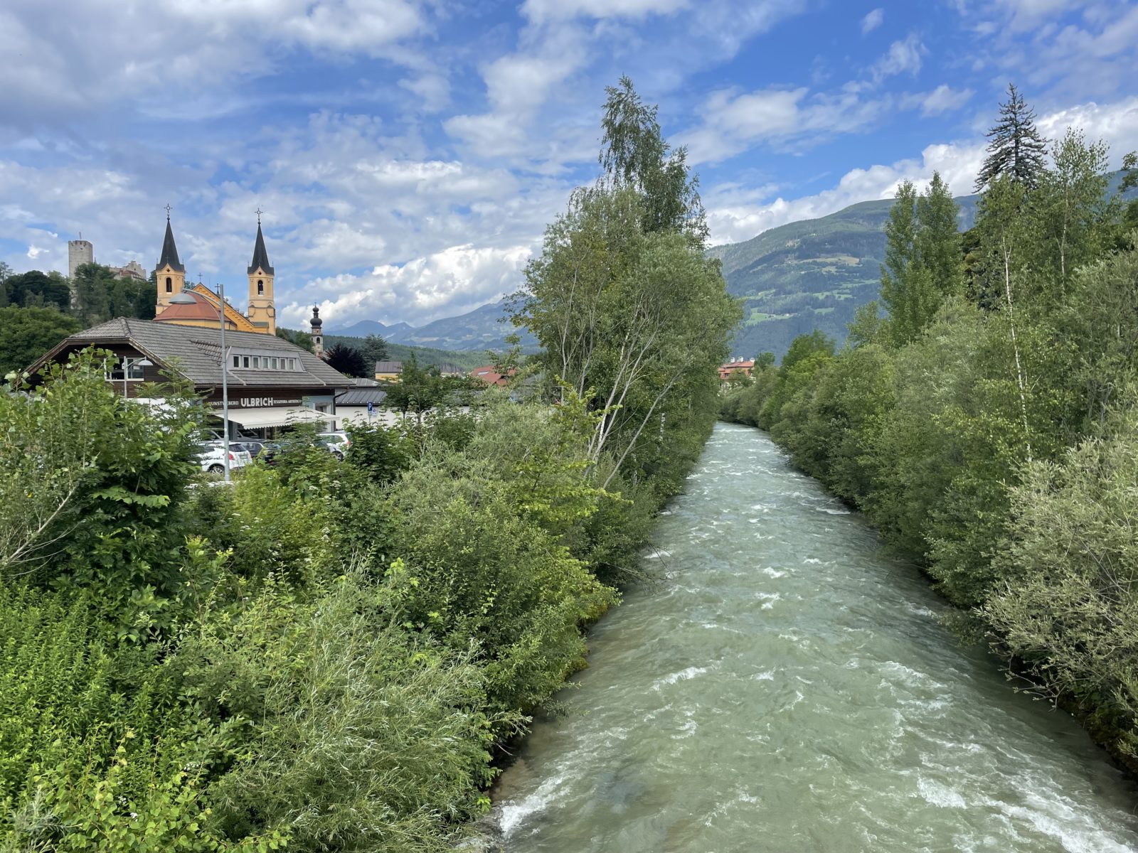 Na snídani se zdržím víc jak hodinu. Pak jdu na pokoj a pomalu se připravuju k odjezdu. Podle jízdenky domů, kterou jsem včera koupil, bych měl jet vlakem 12:30 do Lienzu ve východním Tyrolsku. Ale tento první spoj ze 4 není vázaný na konkrétní vlak, takže se rozhoduju jet už v 11:30 a tím pádem budu mít něco přes hodinu na procházku po Lienzu.