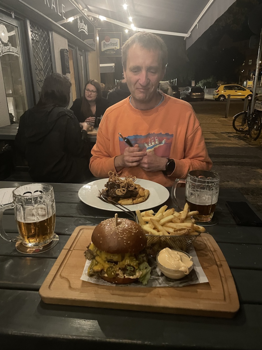Dáme si s Jindrou večeři a pivo a někdy o půl jedenácté jsme doma a jdem brzo spát.