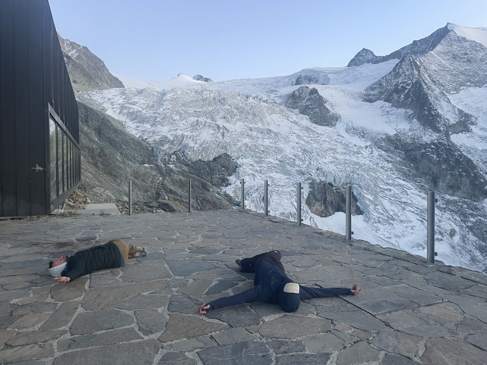 Je tu krásně, sluníčko pořád hezky hřeje. Trochu si venku čtu a pak sleduju, jak si skupina nacvičuje záchranu při pádu do trhliny. Ají jsem se něco přiučil.