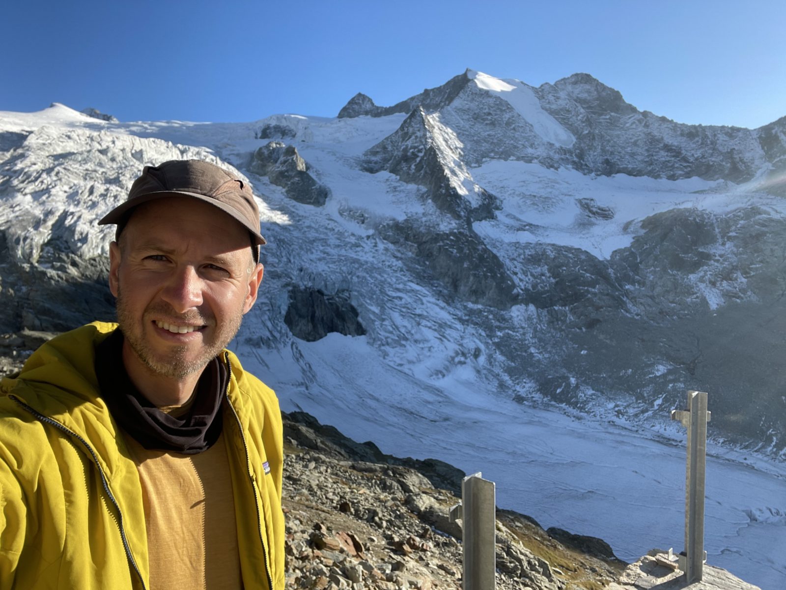Pak sedíme a kecáme venku. Jako kulisu máme výhled na ledovec. Je to fakt bomba. Mezi 7 a 7:30 slunko zaleze za horu a okamžitě padá teplota. Ještě chvíli vydržíme, hlavně díky tomu, že jsme se všichni nějak spontánně začli protahovat (nevím, kdo to začal) a pak jdem dovnitř.