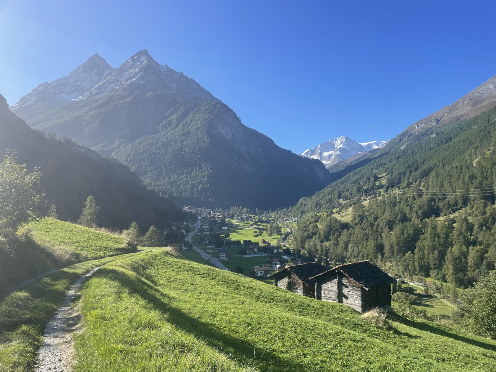 Vyrážím až v 9:44. Prve vystoupám asi 250 m do vesnice La Sage. Tady se napojím na hlavní stezku, která vede přes sedlo k přehradě Moiry a pak dál přes další sedlo do Zinalu. (Ale já před přehradou uhnu doprava směrem k chatě.)
