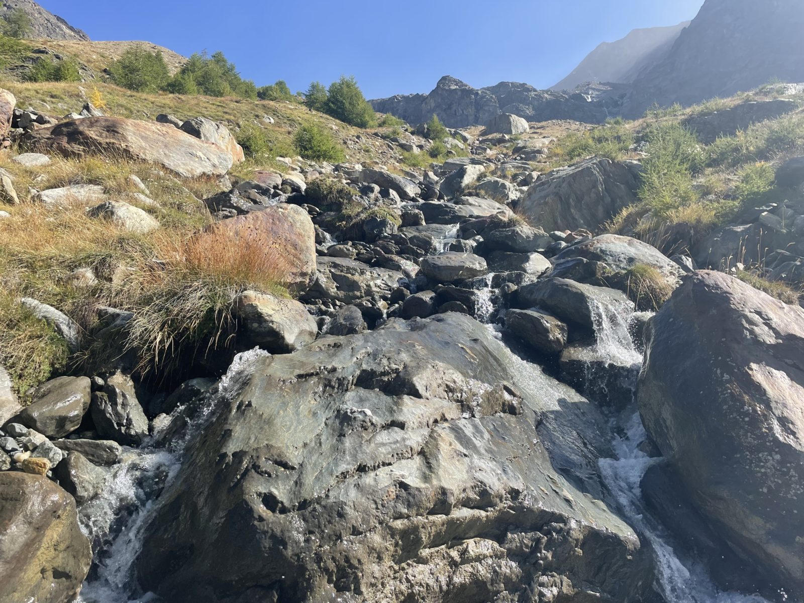U obchodu jsem v 10:35. Kupuju pár drobností a zmrzlinu. Stoupám zpět na stezku a teď začíná hlavní výstup s pár vlnkami až k chatě Europahütte ve výšce 2200 m. Hurá do toho!
