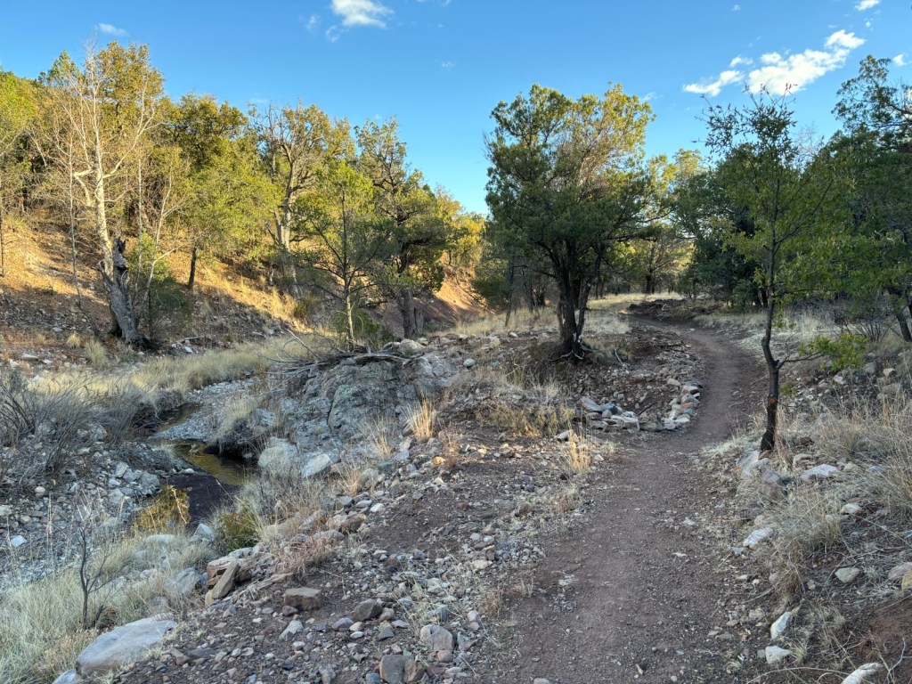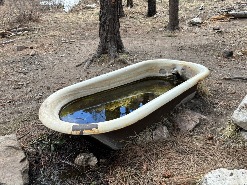 Pak se dostaneme dolů do zalesněného kaňonu. Tady před dalším zdrojem vody potkávám dva hikery. V 16:12 jsem u betonové nádrže. Ta je podle očekávání prázdná. Vodu beru o kus dál z takové louže ve vyschlém potoku. Dávám i sváču. Když znovu vyrážím, tak mě zrovna dojde Paul. Zastavuje a nabírá vodu. Ušli jsme asi 30 km a shodujeme se, že ještě tak 5.