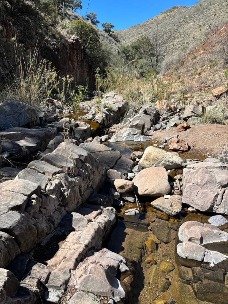 Pak už je to jen kousek k dalšímu potoku. Je 13:10 a mám za sebou 24 km. Je tu i ten týpek, co jsem ho viděl prvně. Jmenuje se Crush a před pár týdny dokončil Florida Trail a po AZT bude pokračovat na CDT. Kecáme spolu, mezitím dojdou dva starší pánové, co jsem je před chvílí předešel.