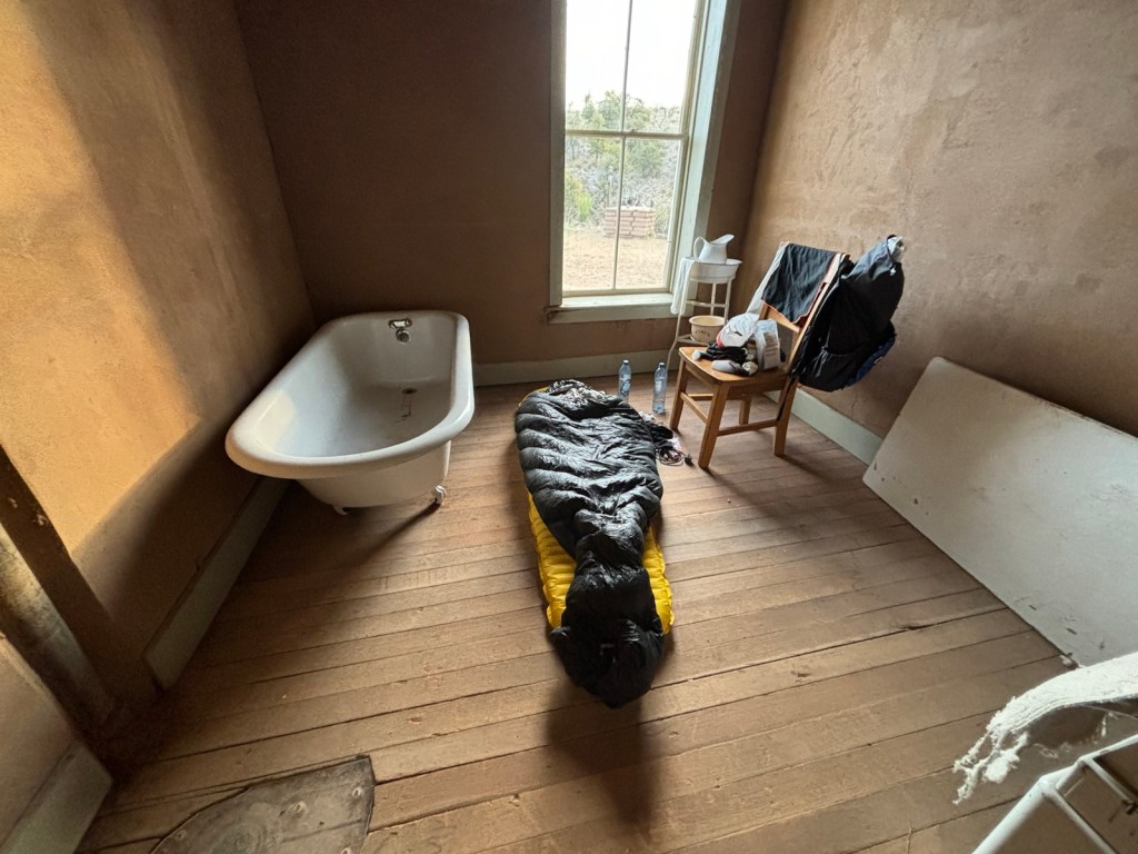 Když v 6:45 vstávám, tak správce Steve už chodí kolem. Nabídne mi kávu. Zřejmě mu to vůbec nevadí, že jsem si ustlal uvnitř.