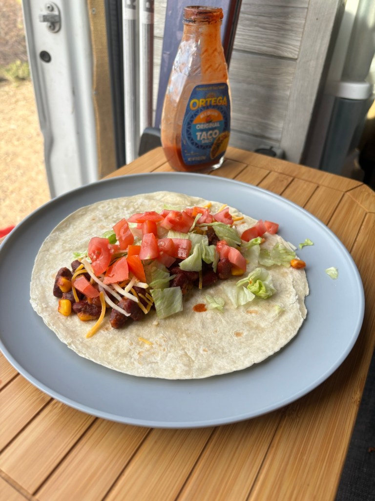 Dostanu perfektní burrito. Ještě chvíli kecáme a v 17:30 pokračuju dál. Už půjdu jen chvíli a zakempuju.