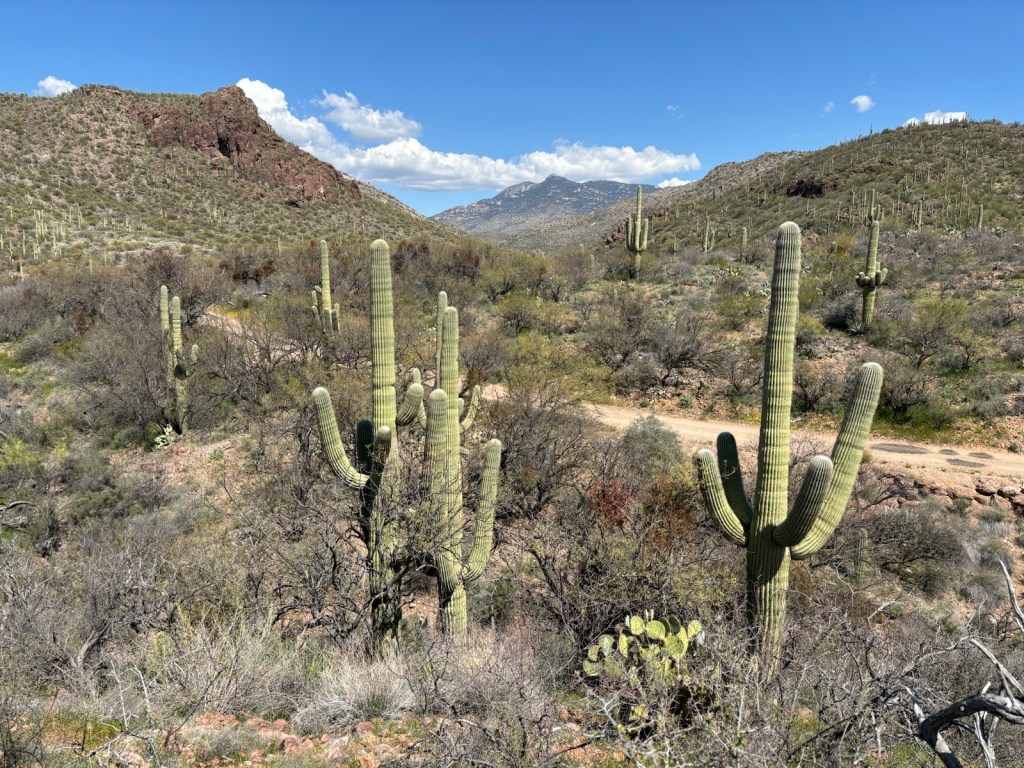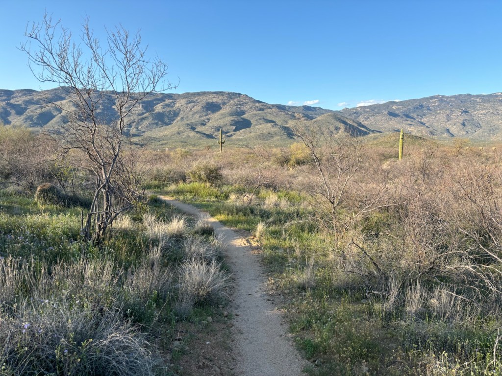 Můj cíl je dojít dnes až co nejdál k parku Saguaro, do kterého jsem si dnes koupil permit a kde se smí spát jen ve dvou oficiálních kempech. Do toho prvního by to už dnes bylo moc daleko. Takže se aspoň dostanu co nejdál a zítra projdu skrz celý park (27 km).