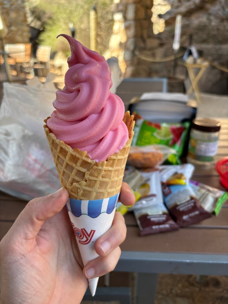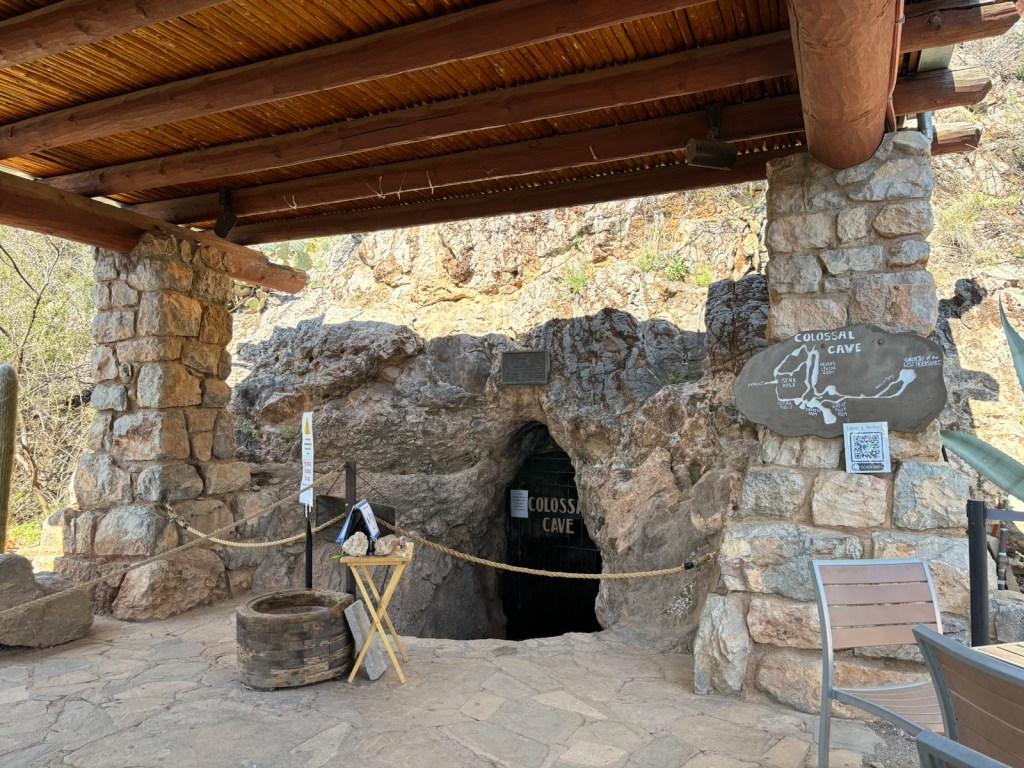 Ve 12:40 se dostanu k parku Colossal Cave. Prve projdu kolem ranče a pak po hezké stezce až k návštěvnickému centru a vstupu do jeskyně – hlavní místní atrakce, jak napovídá název. Je to zacházka kilometr nebo dva. Chodí sem dost hikerů, protože si sem jde poslat balík s jídlem na další etapu. Tak jsem učinil i já.