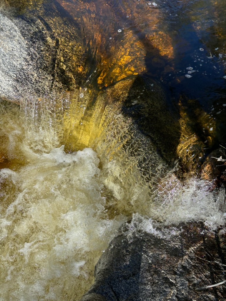 Prve stezka vede zvlněným terénem. Potom dokonce klesnu o kus níž, než jsem startoval. Všude je hodně vody. U pár potoků mám problém přejít suchou nohou. Podaří se to tak napůl.