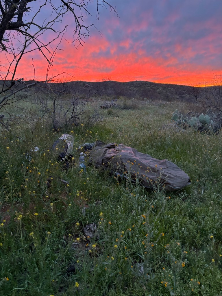 V noci jsem toho moc nenaspal. Bylo celkem chladno, ale to nebyl hlavní problém. Během noci občas někdo přijel autem na záchod naproti. A pak uprostřed noci jeden hiker uvnitř pošty začal říkat druhému, že chrápe. A pak se přestěhoval ven za mnou. A pak ve 4:30 už vstával a dělal rámus.
