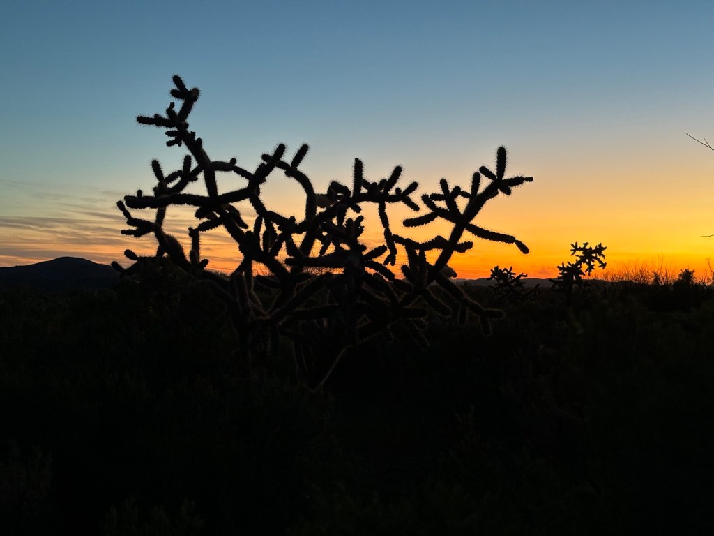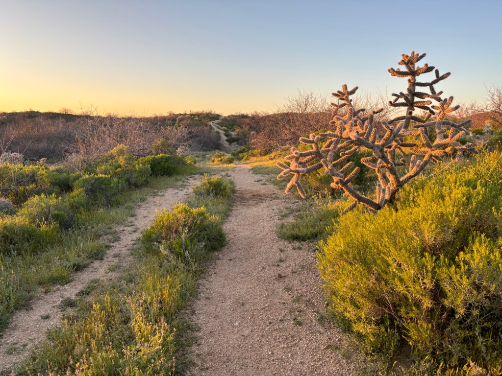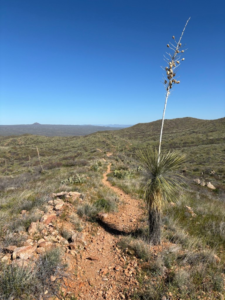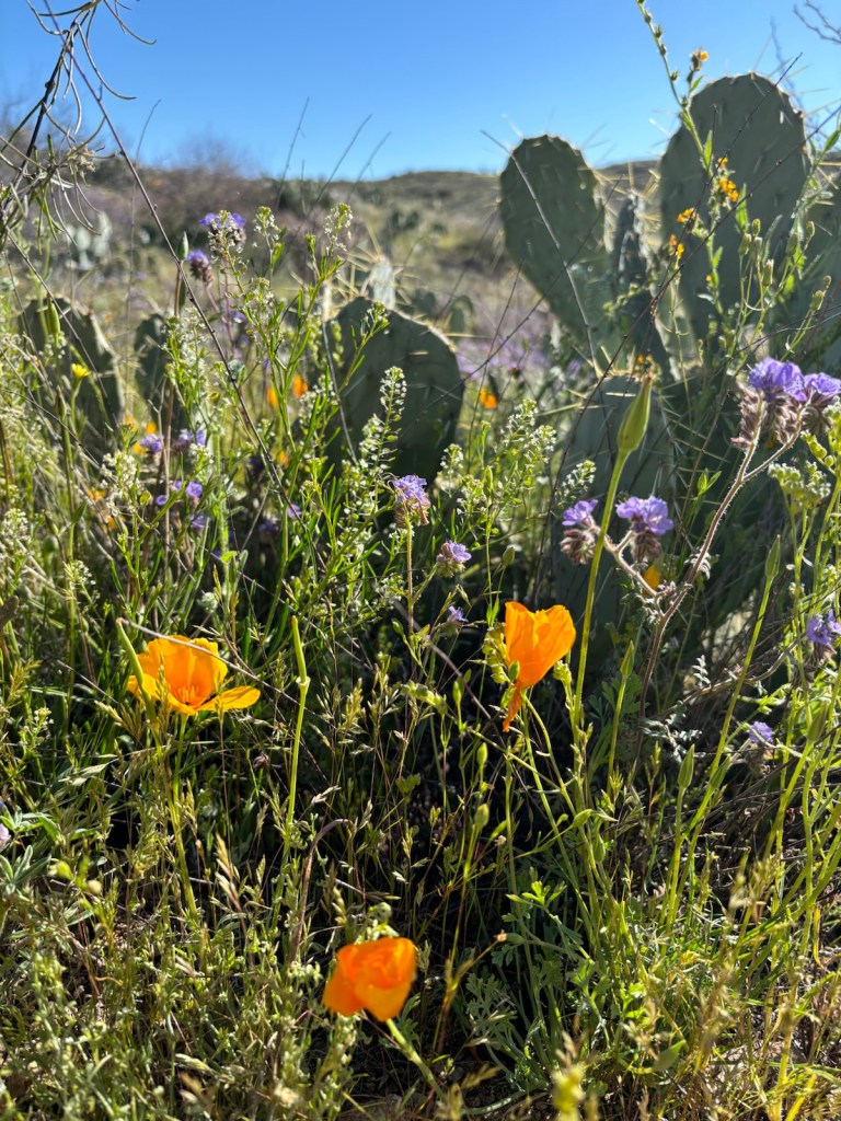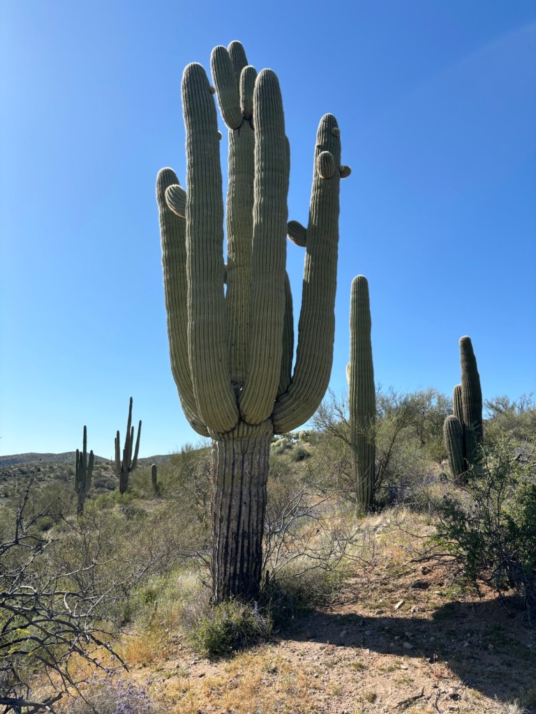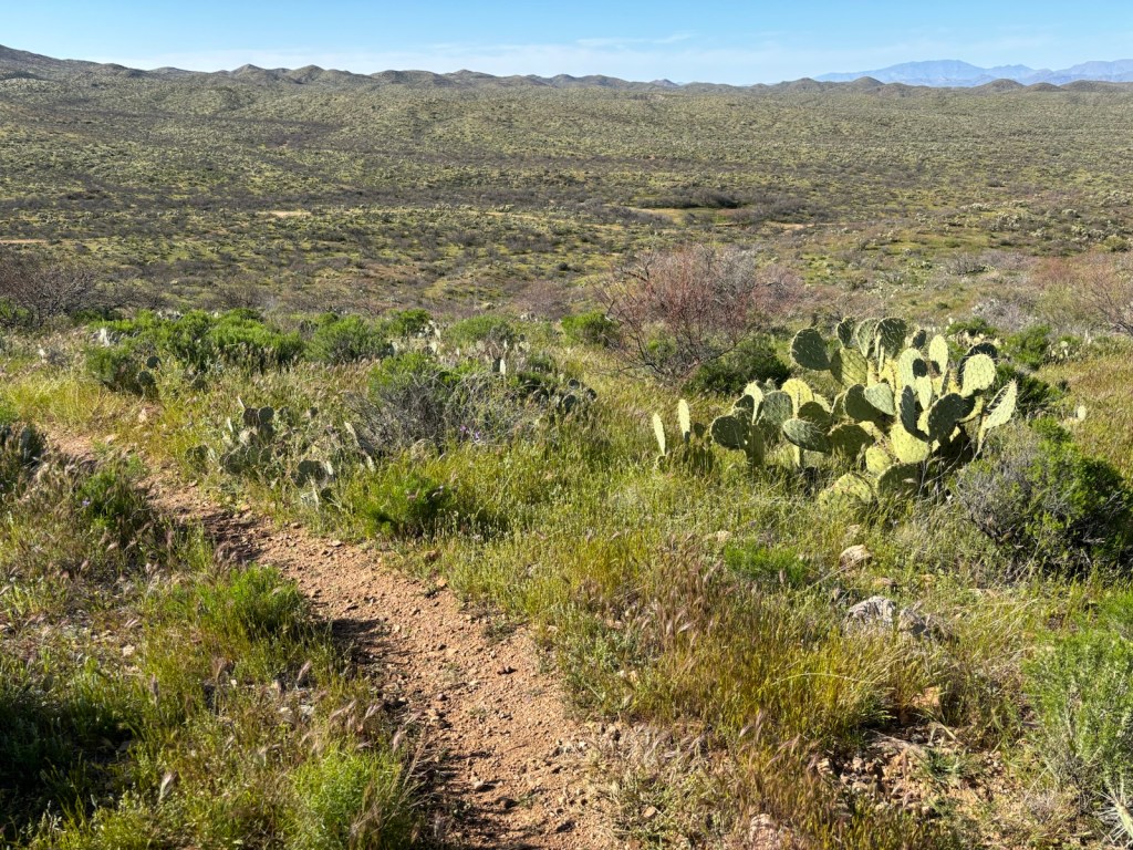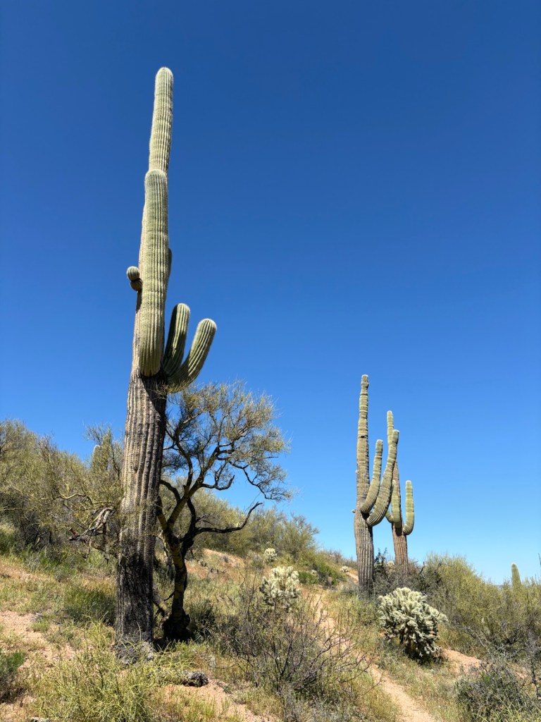 Vyrážím po osmé. Je jasno. Dnes bude hic. Aspoň že to tu všude kvete. Je to hezké. A i kaktusy Saguaro tu pořád jsou.
