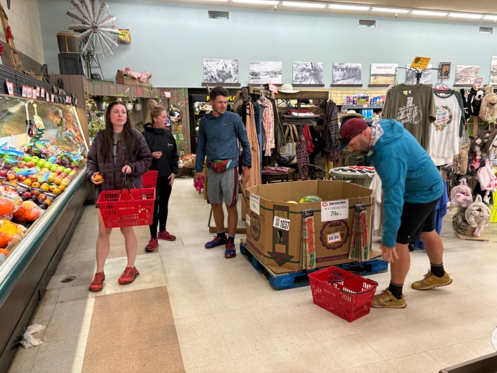 Jsou Velikonoce, takže jediný otevřený podnik je supermarket. Odpoledne jdeme s dalšíma hikerama nakoupit. Mrholí.