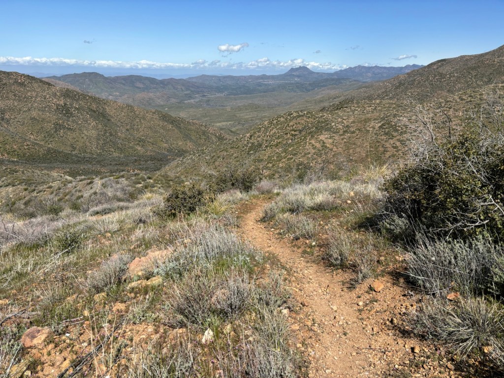 V 6:45 vyrážím. Pokračuju po prašné cestě, co vede po hřebeni. Půjdu po ní několik hodin. Je chladno a stále fouká.