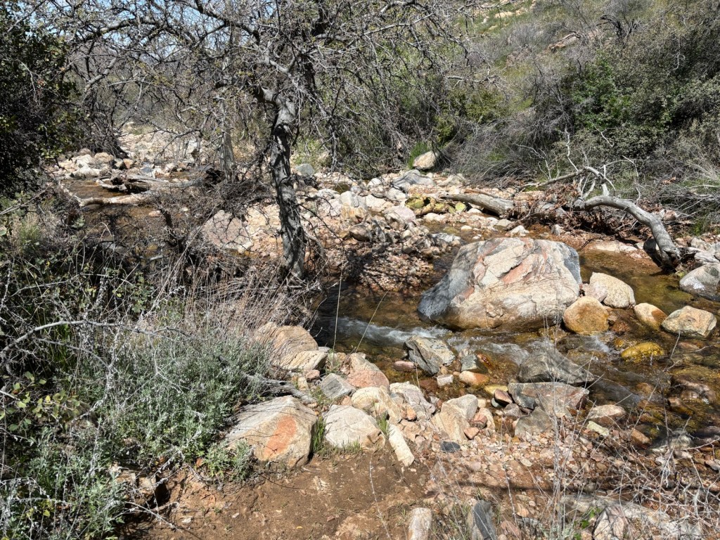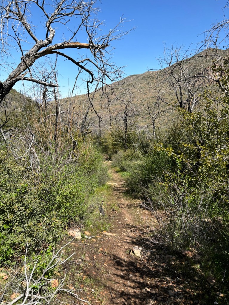 V 10:20 jsem konečně na cestičce, která začíná klesat do údolí. Tady se pak vlním kolem řeky. Je to celkem fajn, ale už počítám kilometry k silnici. Dojdu k ní ve 13:18.