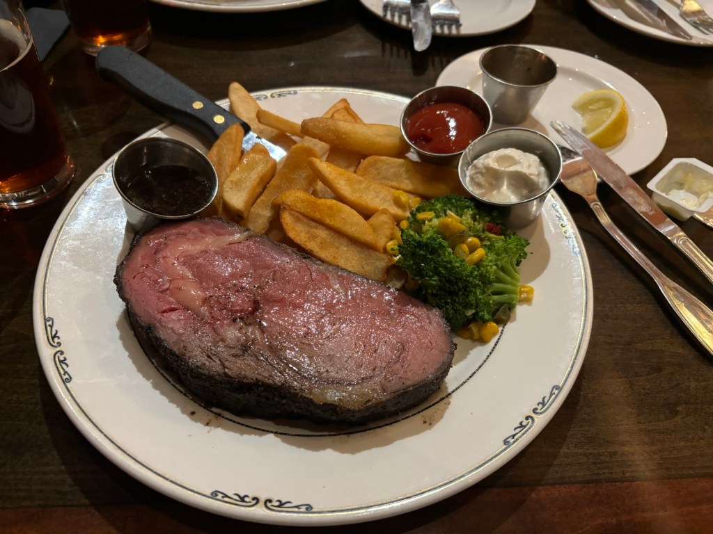 Když máme hotovo, jdeme zpět. Alenka má chuť na steak a jedna restaurace je hned kousek od našeho hotelu. Jdeme tam. Je celkem plno, ale místo pro nás mají. Jsme tam v 7.