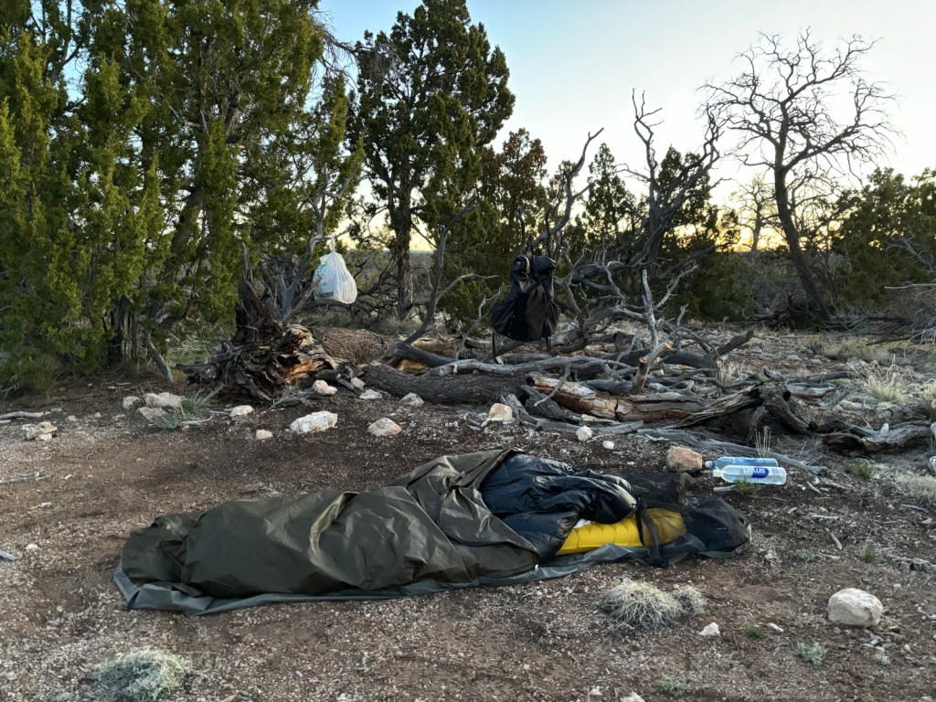 Už se mi moc nechce jít. Taky mě začíná trápit tření mezi půlkami. To je věc, se kterou bojuju dlouhodobě, ale už to většinou dokážu manažovat. Dnes už to moc nejde. Vazelína nepomáhá. Ale ještě bych se chtěl trochu přiblížit, abych to zítra měl do Grand Canyon Village už jen třeba 10 mil.