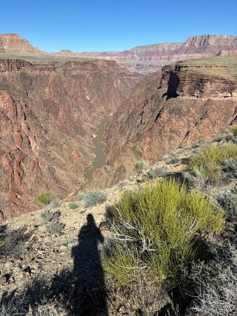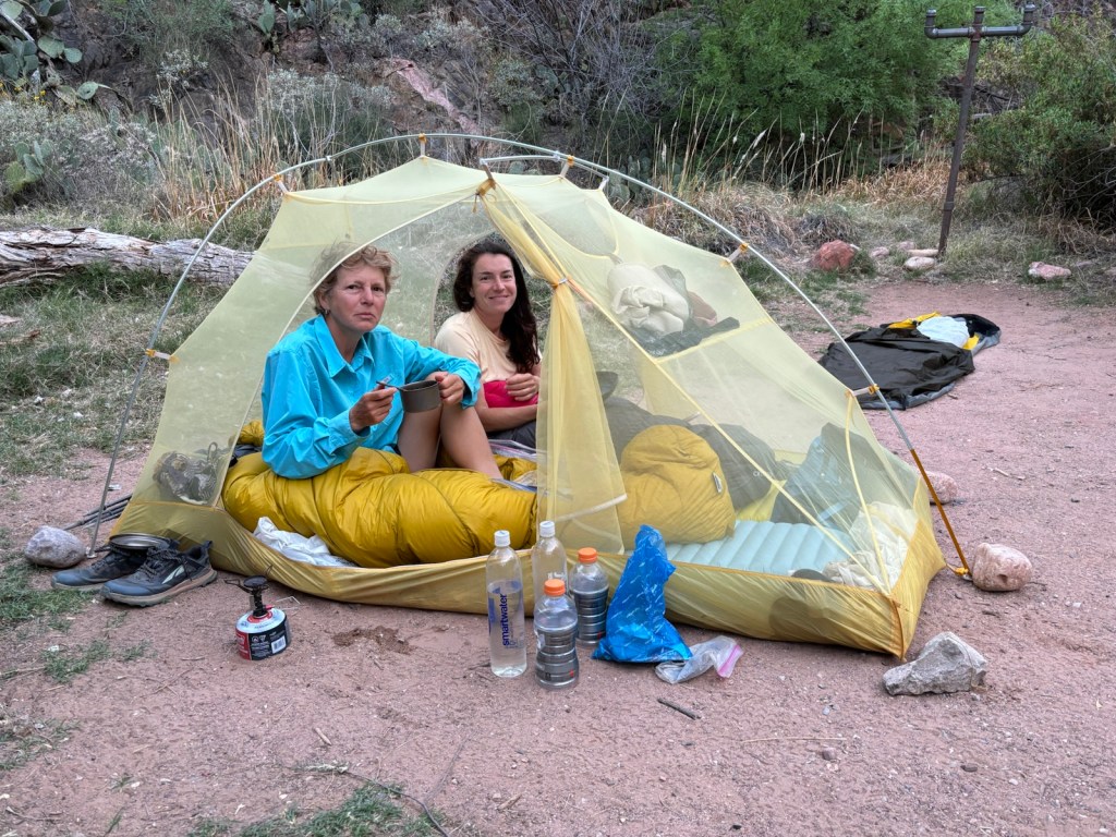 Vstáváme někdy o půl šesté. Alenka a Lenka snídají ve stanu, já u stolu. Holky budou pokračovat po AZT směrem na sever, já se vrátím zpět na jižní stranu řeky a pak budu pokračovat po Tonto Trail, který vede ze západu na východ asi 400 m nad kaňonem.