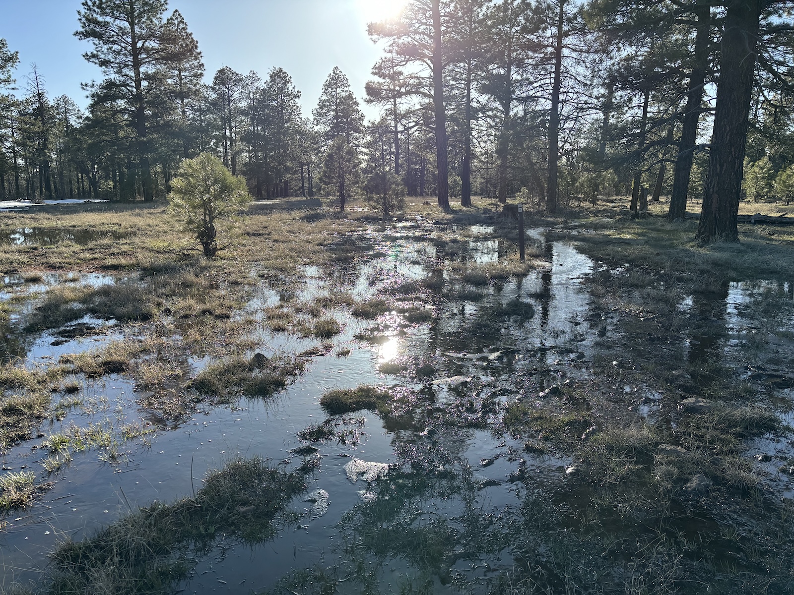 Pak byl ještě velký sněhový úsek nad sever od Flagstaffu, můj 31. den na trailu. Tehdy jsem šel sněhem soustavně asi 3 hodiny. Bylo to náročné, ale zároveň hezké. No a pak nás čekal sníh ještě na severním okraji Grand Canyonu, kde jsme nakonec šli 40 km po silnici, abychom se vyhnuli brodění ve sněhu. Vlastně jsem měl tu poslední třetinu trailu celkem štěstí, protože pár dní po mém finiši pak znovu napadl sníh i na jižním okraji Grand Canyonu (který je níž než severní okraj). A pak ještě znovu asi o další týden později. Kdo by to byl čekal, že v Arizoně budu muset řešit sníh!