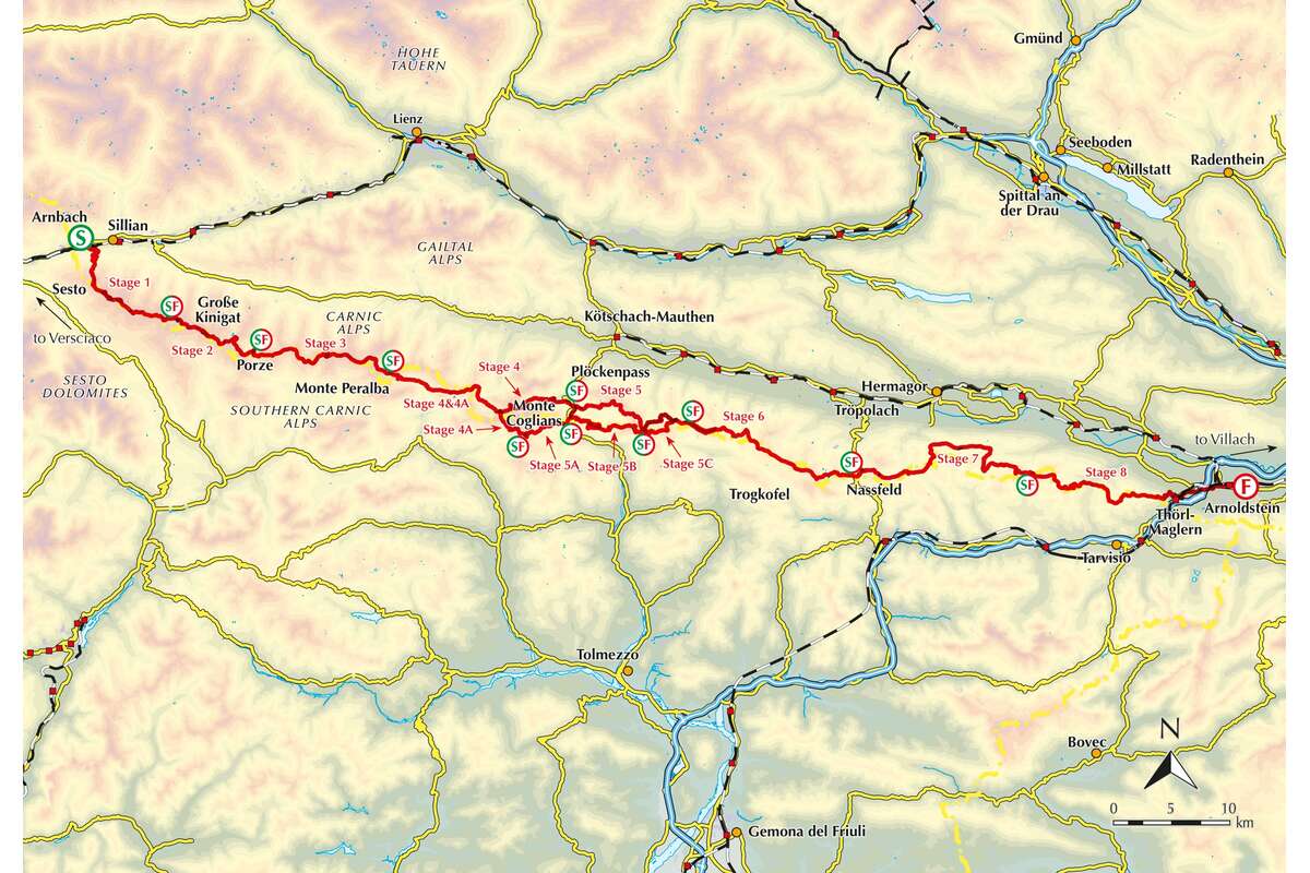 Stejně jako minulý rok do Dolomit, i teď jedu vlakem. Stezka se jmenuje Karnischer Höhenweg a výchozím bodem je městečko Sillian v Tyrolsku. Je to v Rakousku, ale Itálie je co by kamenem dohodil. A celý ten hřeben vede po hranici. Anebo spíš hranice vede po hřebeni. Má to 160 km a asi 9000 m stoupání. Takže to by mohlo být tak na 5 dní třeba. Ale ta stezka vlastně kopíruje stezku Via Alpina Red a ta pak pokračuje dál do Julských Alp, takže tam bych mohl dojít a třeba si ještě vylézt na Triglav a pak dom. To by tak mohlo vyjít, uvidíme. Takže plán by byl.