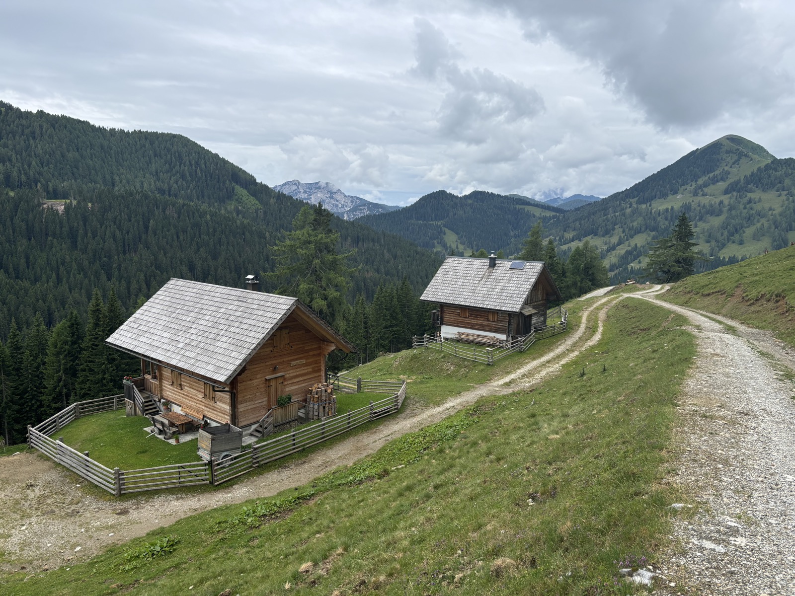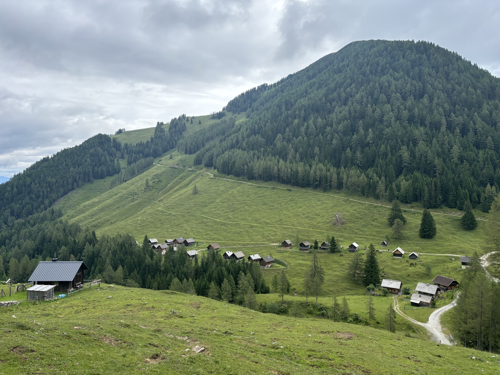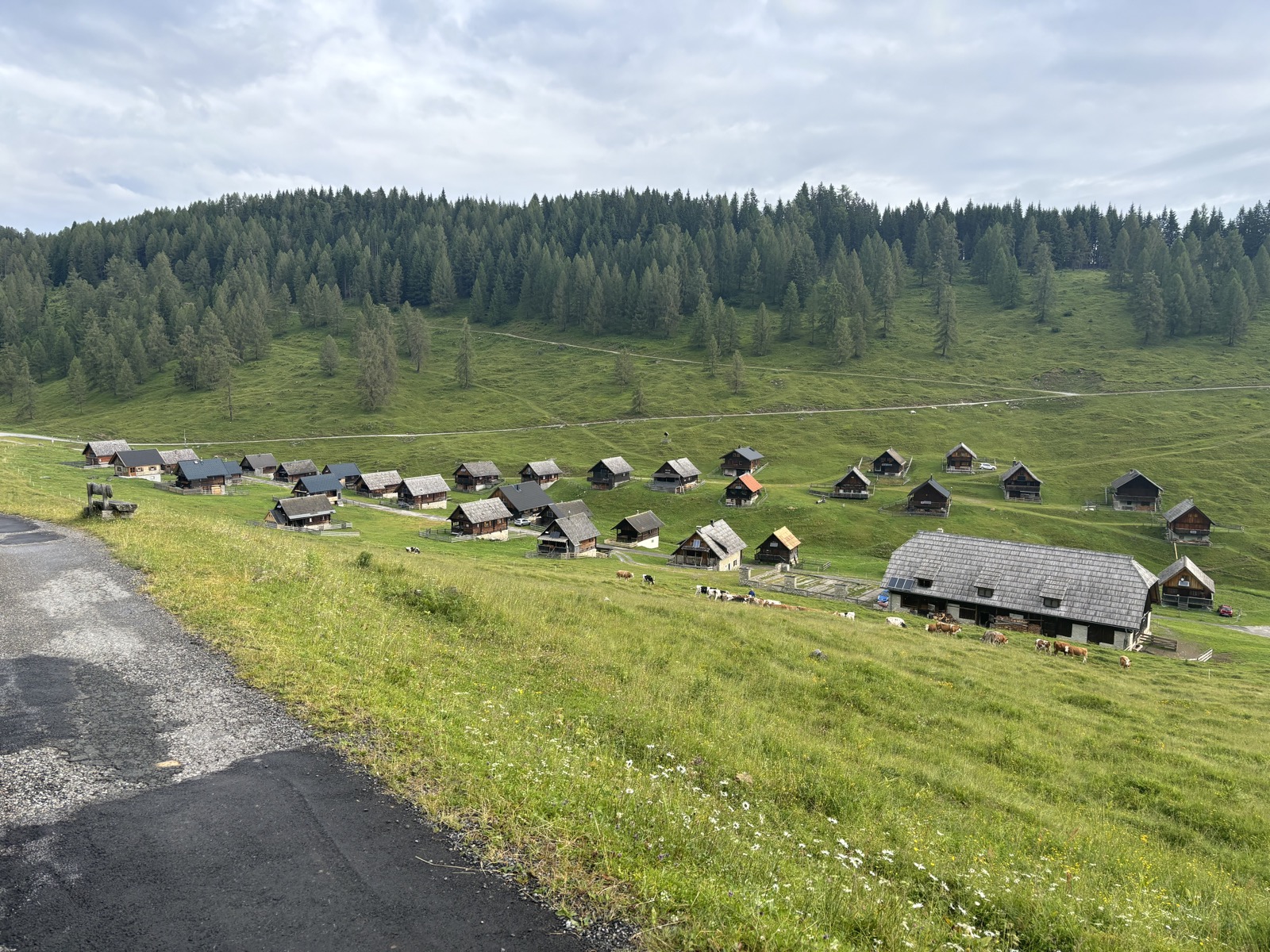 V 7:20 dojdu k dalšímu almu – opět je tu spousta hezkých chalup. Odtud začínám stoupat po štěrkové cestě. Štěrkové cesty mě budou provázet po většinu dne.