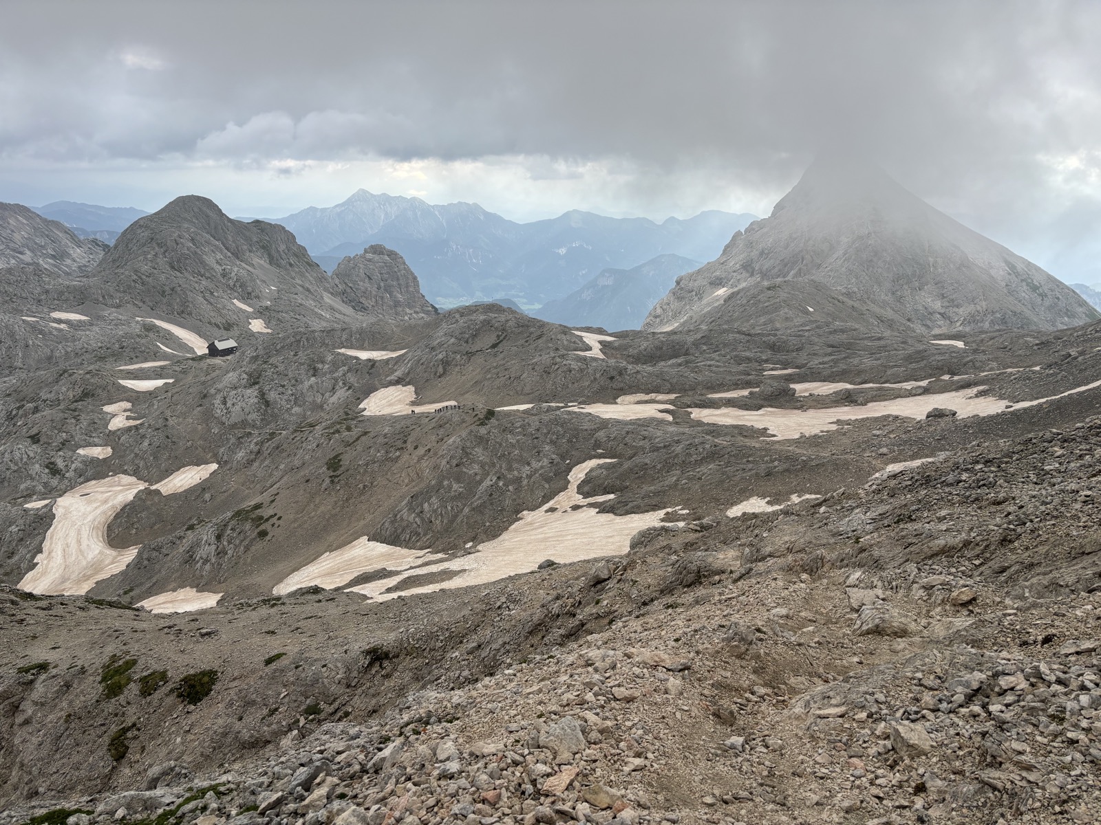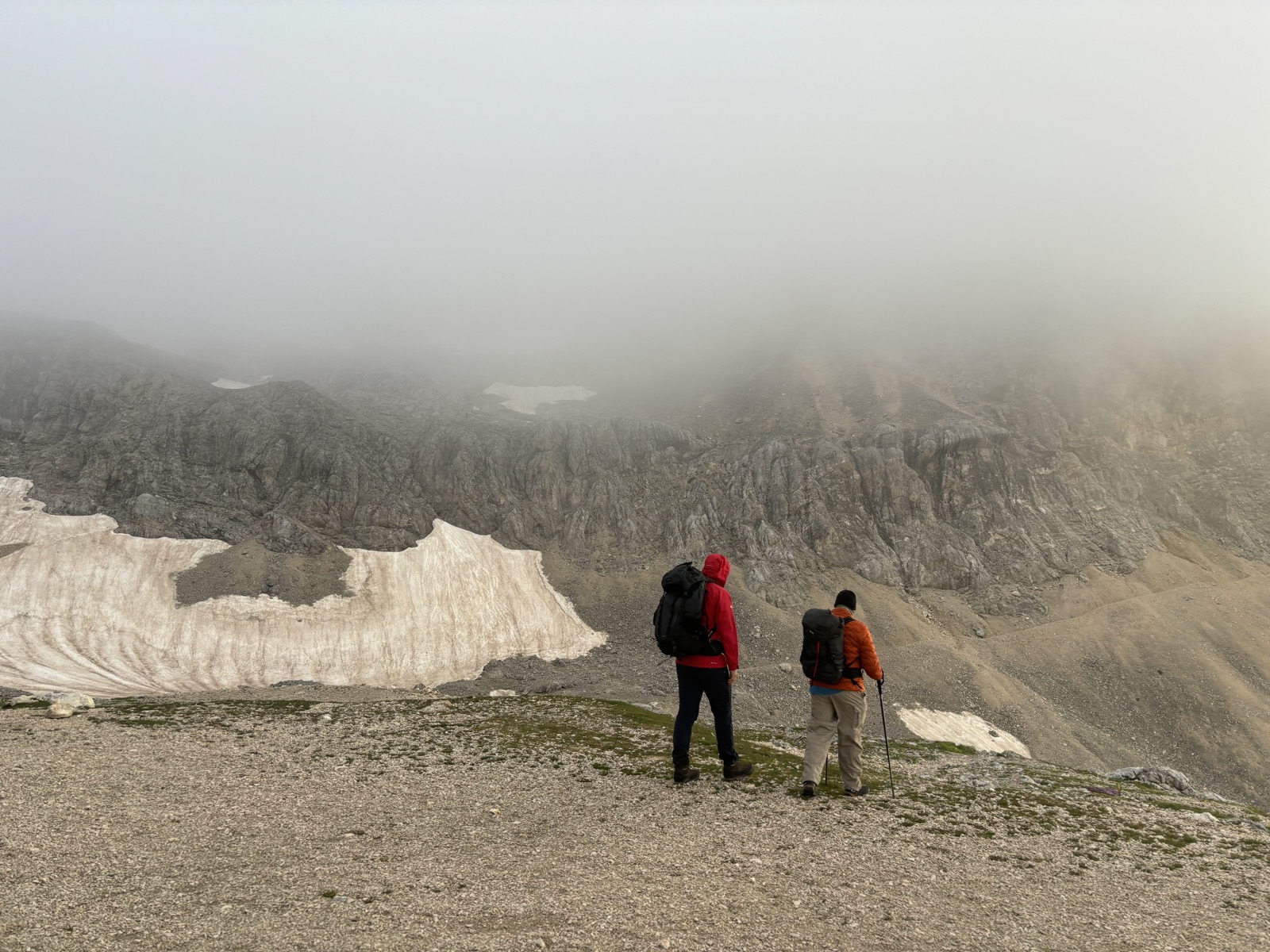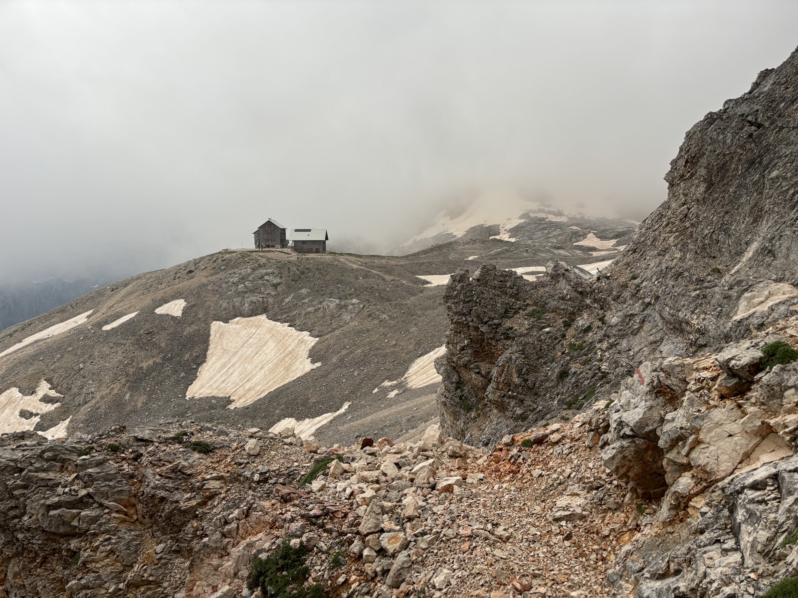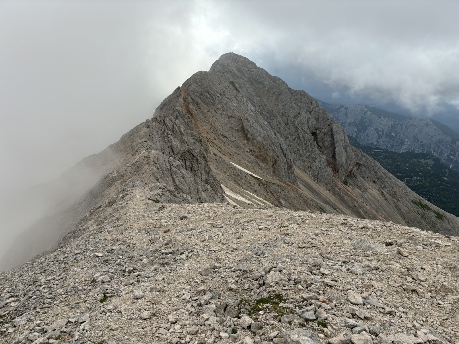 Zhruba o půl osmé pokračuju dál. Mírně stoupám na vrchol Kredarica a pak se cesta vlní. Místy i trochu prší. Jsou tu nějaké zajištěné úseky, ale je to snadné.