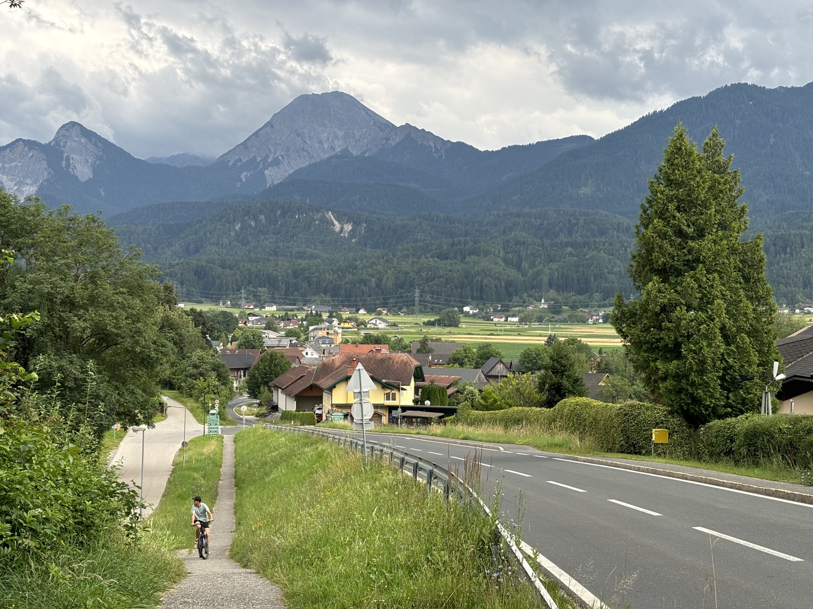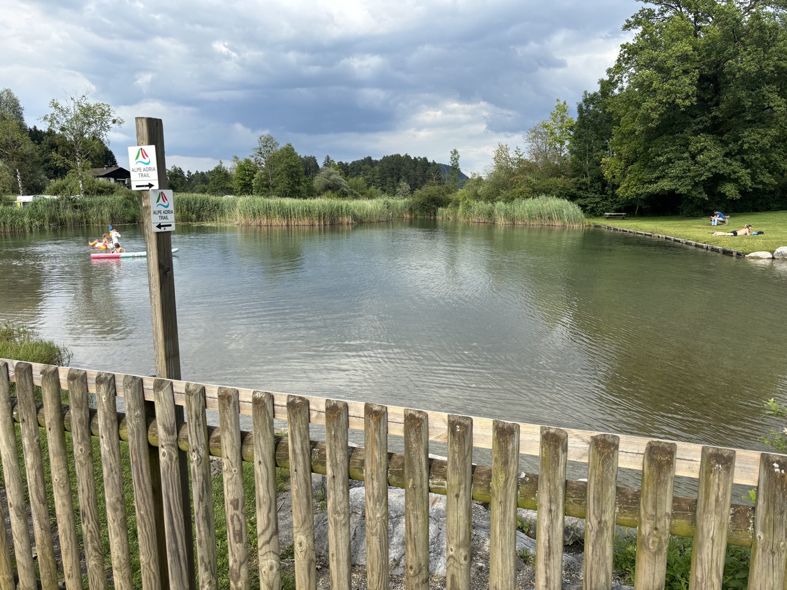 Cesta už je pak hladká. V 16:30 vystupuju ve Faaku. Na moje ubytko je to kilometr nebo 2. Ubytuju se a pak se jdu projít. Je to tu hezké. Ve Faaku je malé jezírko na koupání. Jdu se tam k večeru vykoupat.