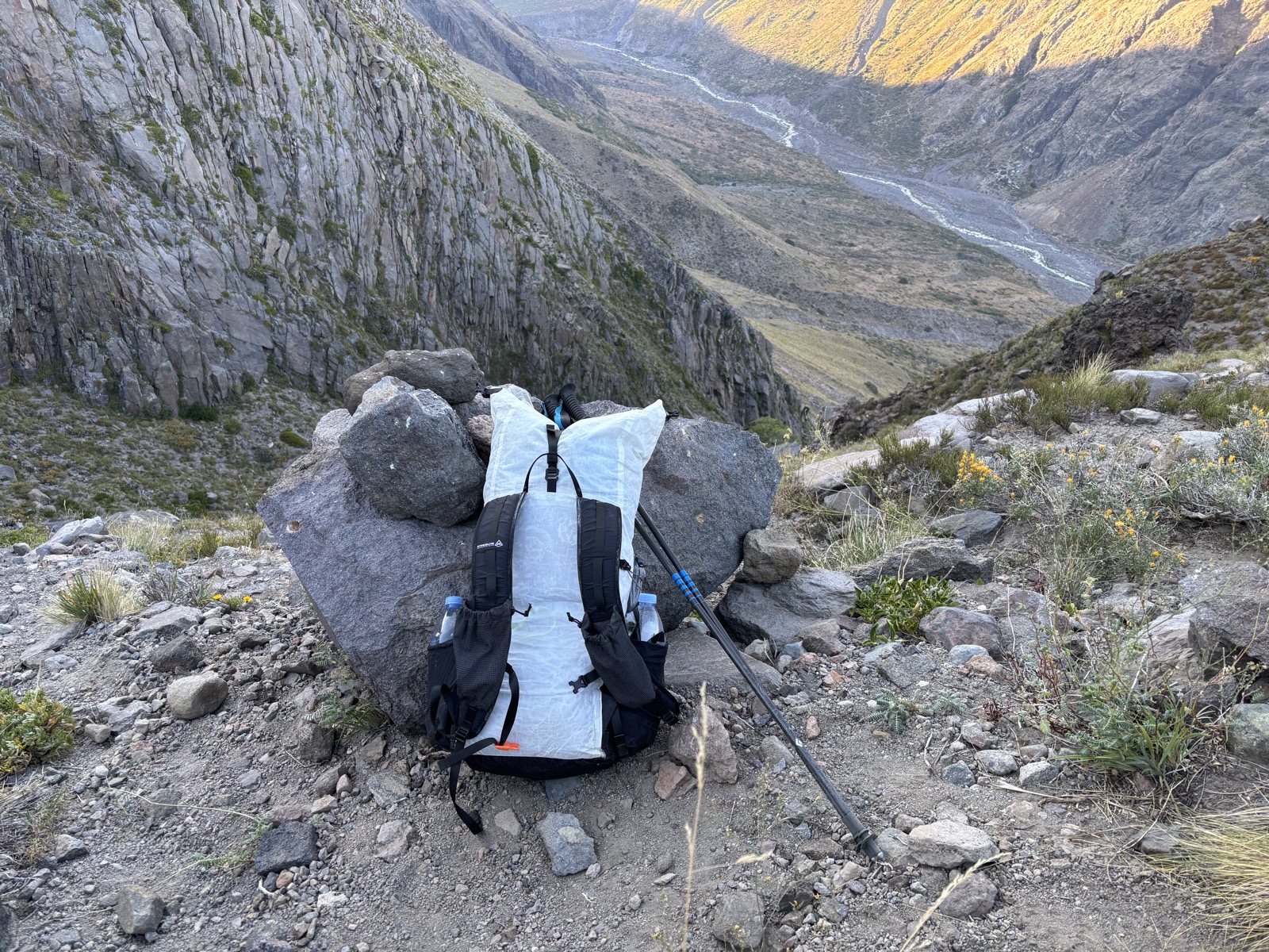 Ve 4 konečně začínám závěrečné stoupání k sedlu a za ním k jezeru – tam dnes snad zakempím. Je to celkem 6 km a 700 m výškových. První asi kilometr je hrůza – drápu se přímo vzhůru. Ale pak se napojím na pěšinu a té se držím celé hlavní stoupání. Samozřejmě se nadřu, ale hlavní je, že už nemusím tápat, kudy jít.