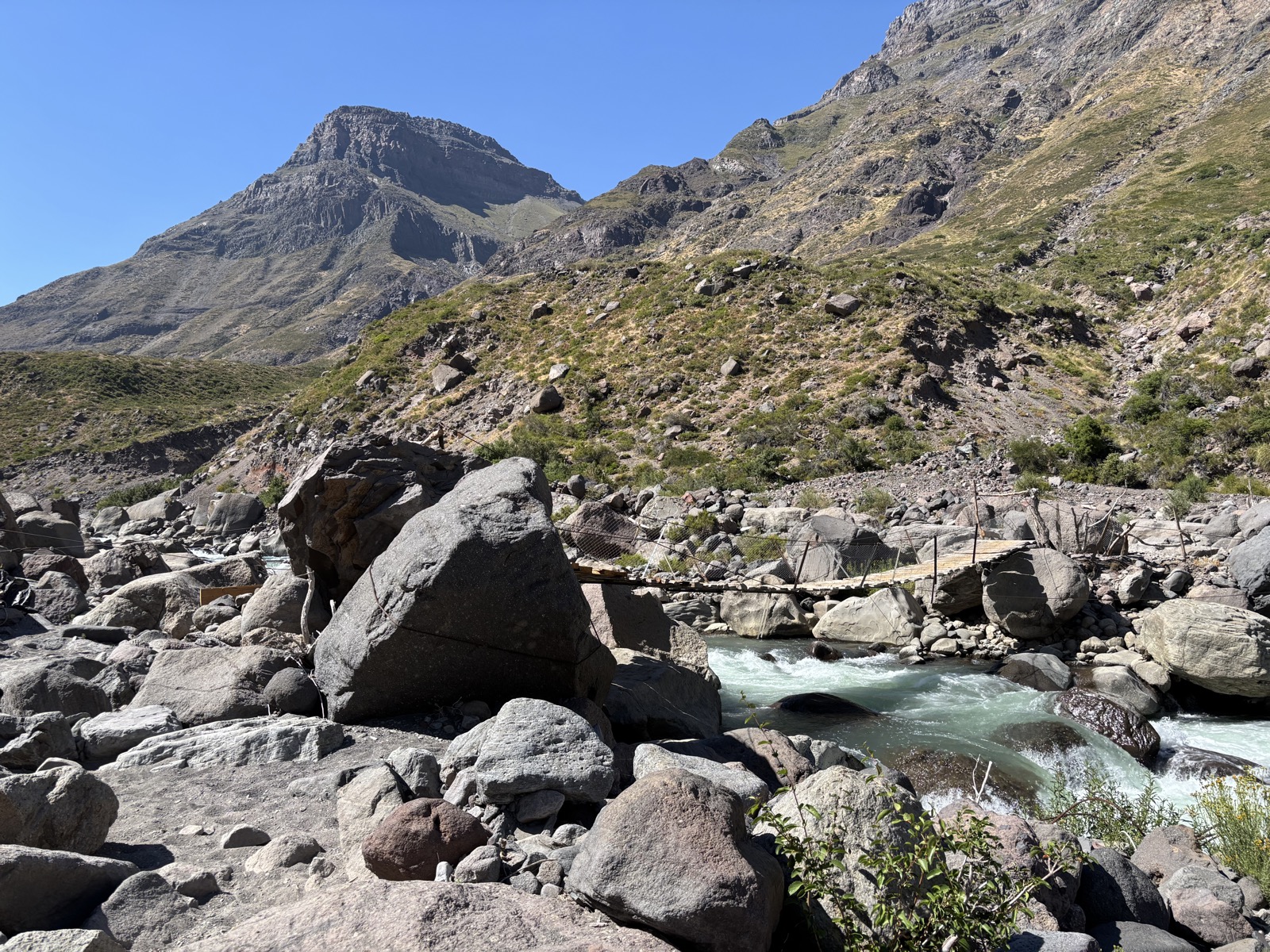 Dnes mě čeká přes 20 km krajinou bez stezky. Bude to výzva. Jak přebrodím řeku, tak prve mírně nastoupám takovým traversem a pak následuje brutální klesání k Rio Colorado, kde by měl být most.