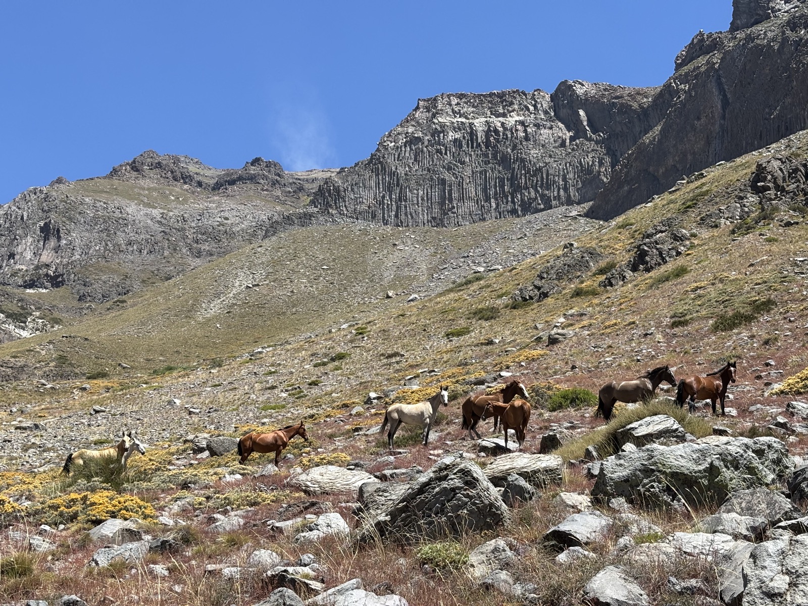 V 18:30 jsem konečně na nejvyšším bodě. Sedlo to úplně není. Je tu taková obří planina. Pokračuju dál a začínám pomalu klesat k jezeru. Vyplaším 3 koně.