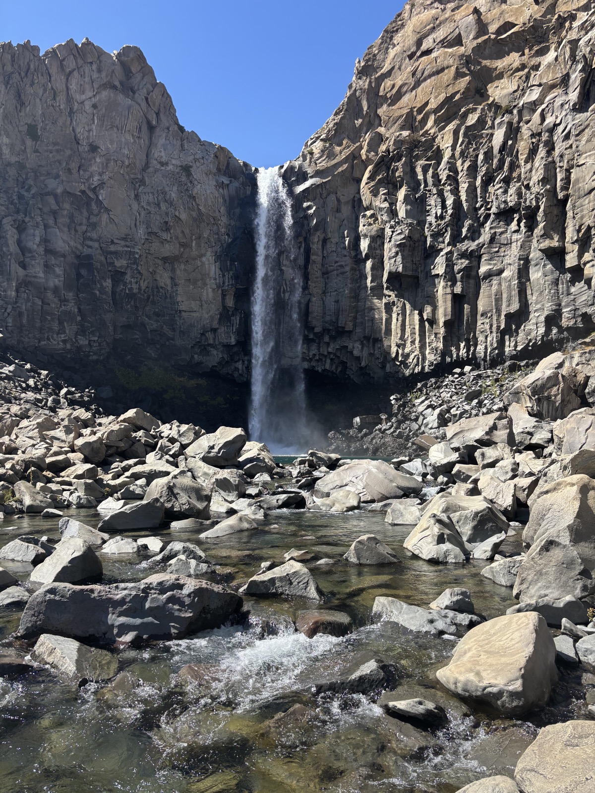 Prohodíme pár slov a taky si vyměníme kontakty a loučíme se. Oni jdou dolů, odkud jsem já zrovna přišel, a já se jdu ještě kouknout kus vedle na spodek vodopádu. Je to super. Voda stříhá všude ve vzduchu.