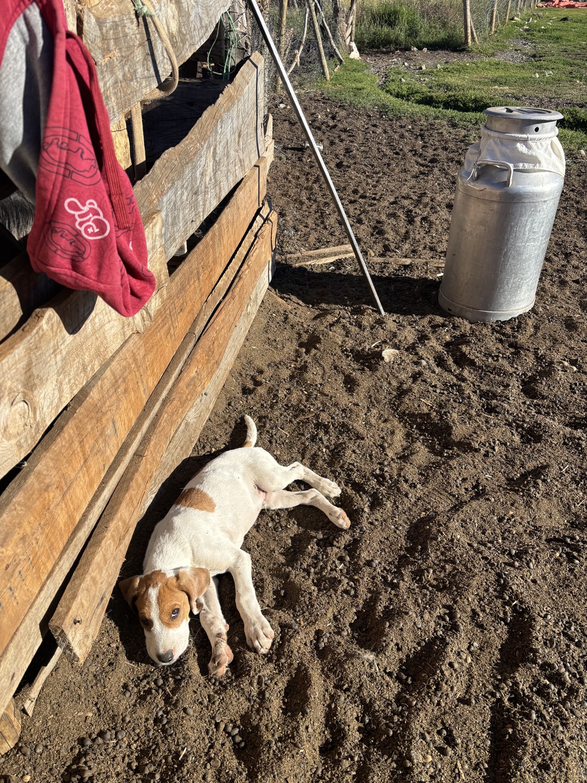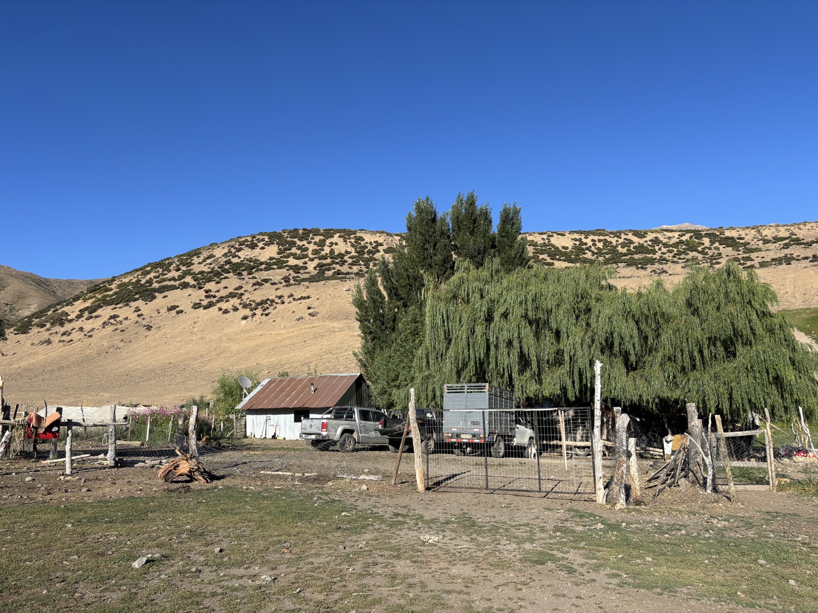 Cesta je snadná, následuju vyježděnou cestu od aut. Dojdu tam v 9:15. Je to takový statek. Vidím lidi v ohradě s kozama, tak jdu za nima. Zrovna dojí. Až na malého kluka jsou tu samé ženy. Předpokládám, že nejstarší z nich je Irma. Omlouvám se, že nemluvím španělsky. A že jestli mají chleba a sýr. Prý ať chvilku počkám. Dodělají dojení a pak dostanu 270 g sýra za 3700. Plus dvě housky. Jestli mám 4000. Tak říkám, že jestli má víc chleba a dávám 5000. Dostanu ještě dvě další housky. Sýr vypadá moc dobře, už se na něj těším. Fakt je škoda, že si s nima nemůžu pokecat. Španělština by se hodila.
