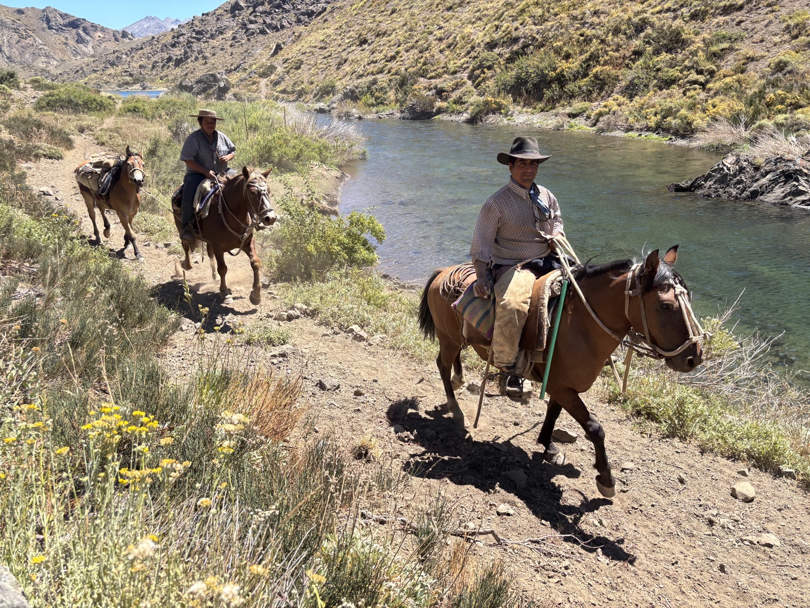 Potkávám několik lidí. U jednoho puesta 2 rybáři. Pak 2 borci na koních, co ženou stádo koz. Pak další 2 na koních.