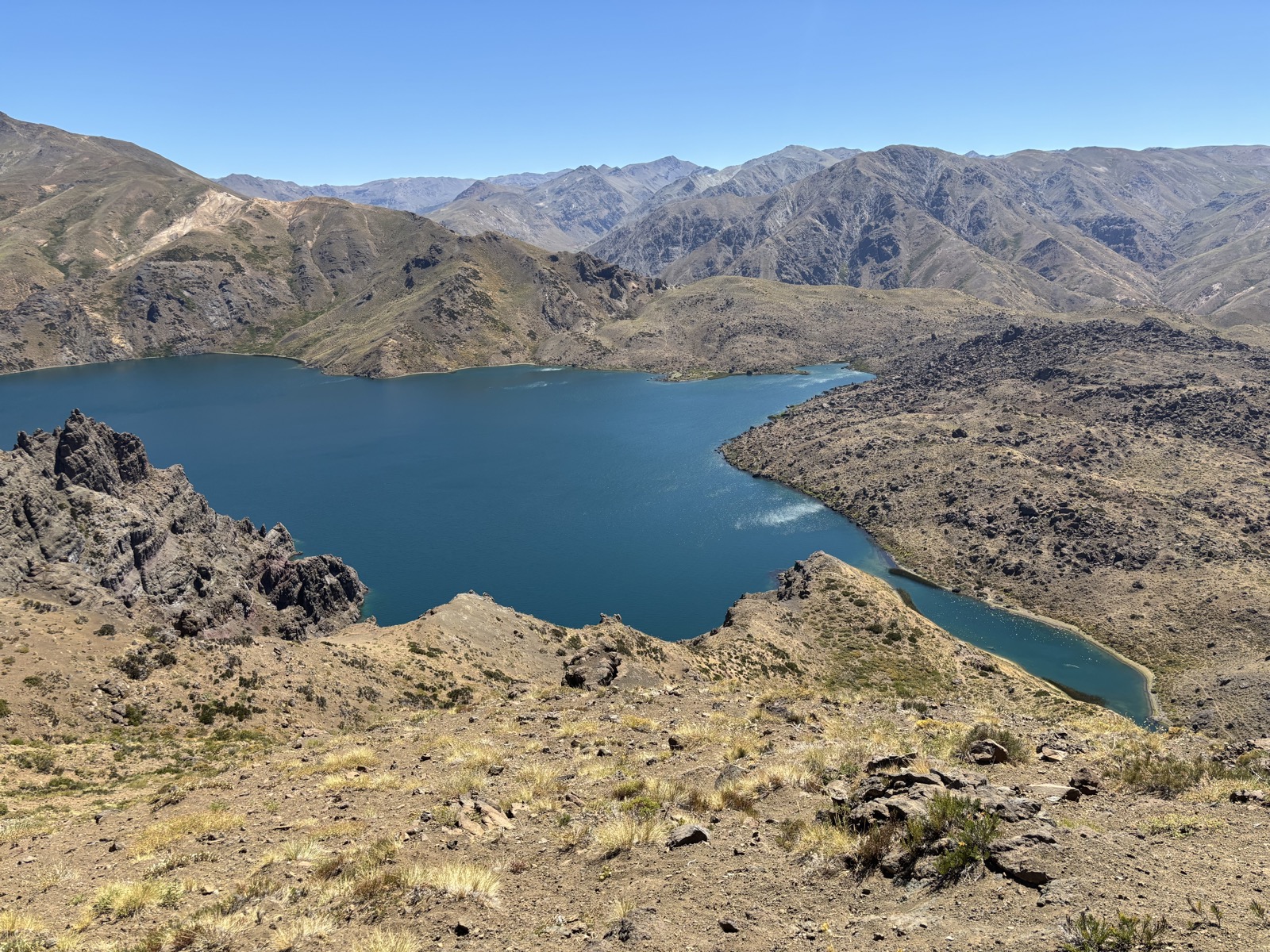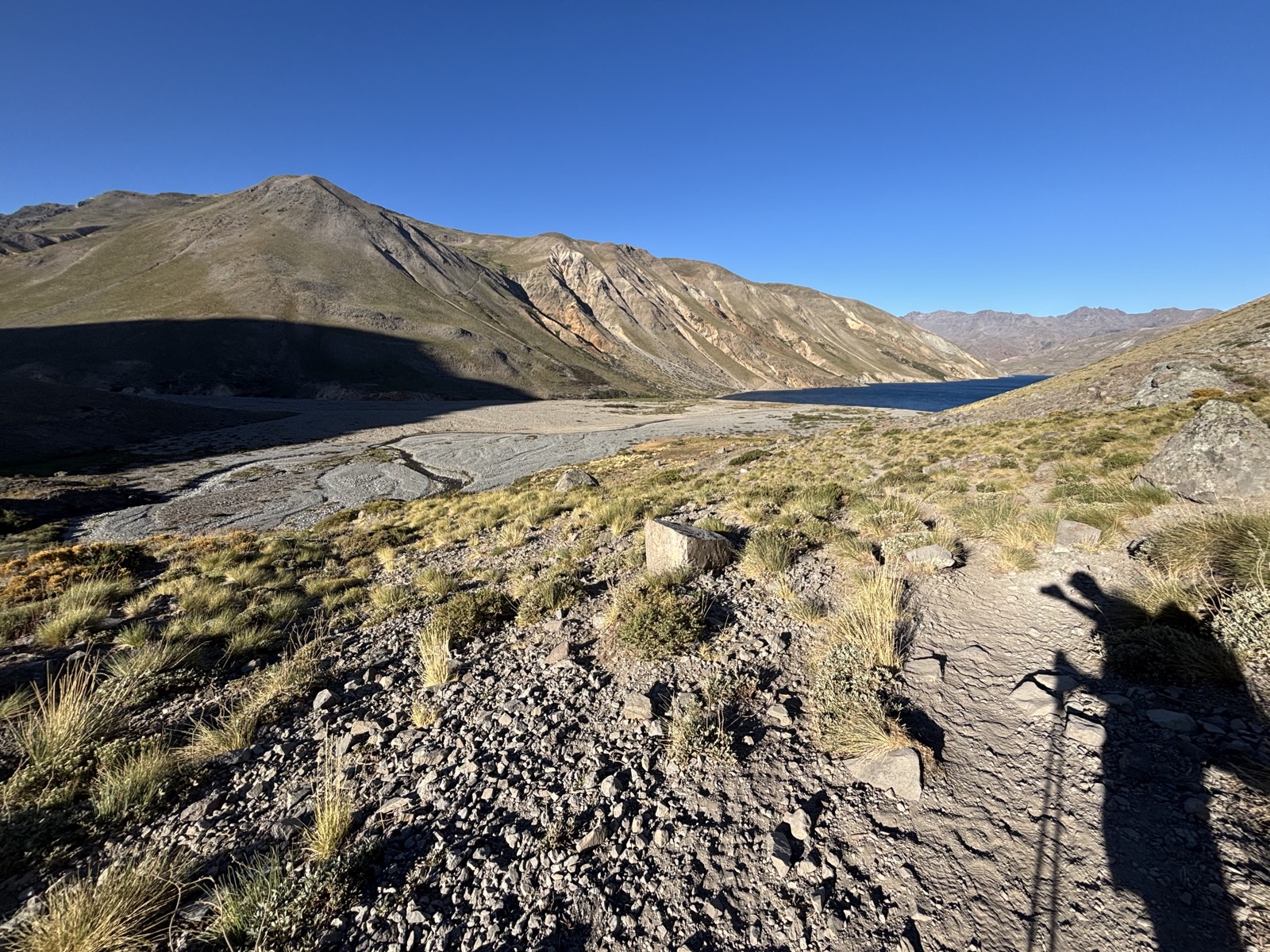Zbývá poslední úsek podél jezera. 3 km až k místu, kde jezero definitivně opustím. Opět je to náročné, nahoru a dolů ve svahu. Ale ke konci mám najednou pocit, že mám víc síly. Buď je to tím, že jsem přidal s pitím, anebo taky tím, že slunko už tolik nežhne.
